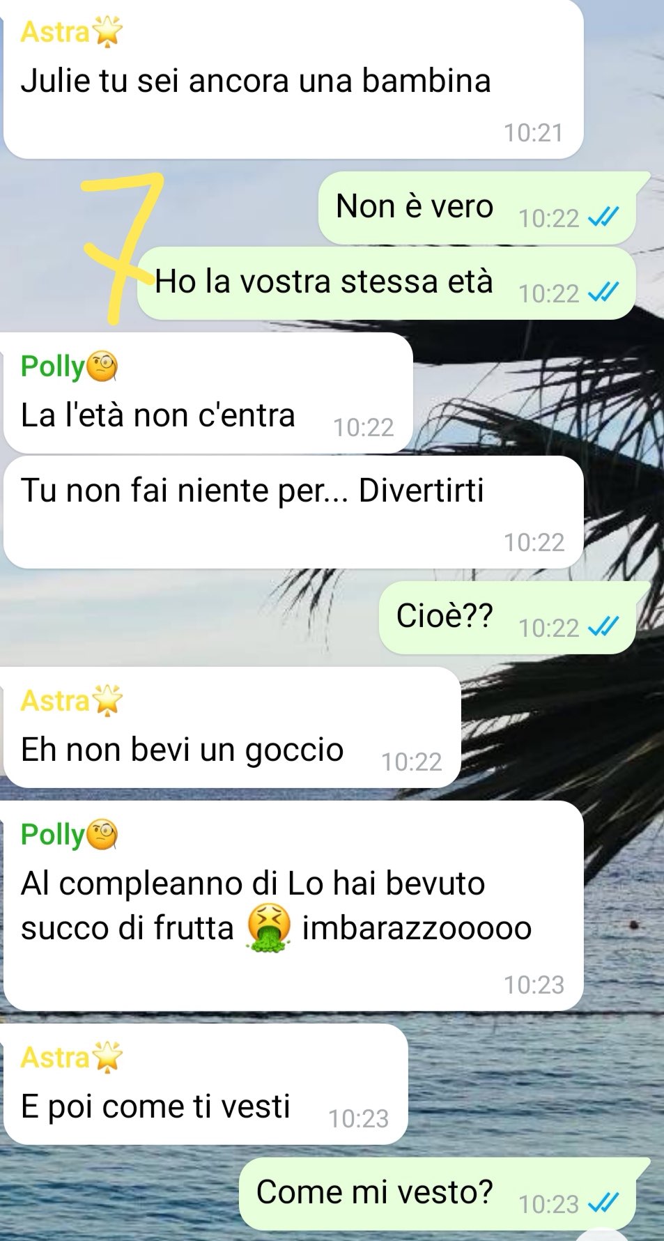 Carola, mamma di Giulia, una ragazzina di 13 anni, condivide una conversazione che riguarda sua figlia e il suo gruppo storico di amiche. Questa chat è stata oggetto di una crisi significativa per Giulia, che ha avuto un forte impatto anche su Carola come madre. Carola ha chiesto il consenso della figlia per inviare la conversazione e ha coperto i nomi veri per rispettare la privacy delle minori.