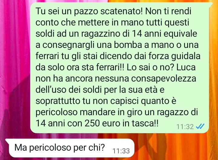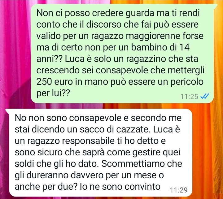 La nostra fan si chiama Laura, è una follower affezionata e ha deciso, per la prima volta, di inviare una conversazione privata avvenuta con suo marito Giovanni. Ha spiegato di averlo fatto per cercare un confronto esterno, in un momento in cui si sente particolarmente agitata e poco lucida. Il motivo del suo sfogo riguarda una questione familiare che coinvolge anche il loro figlio Luca, un ragazzo di 14 anni che rappresenta per entrambi un punto centrale della loro vita.