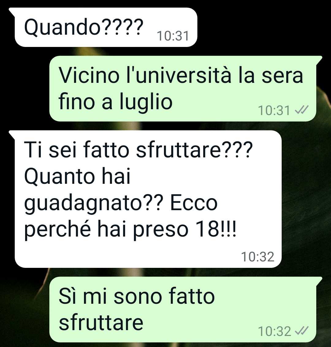 Il nostro follower ammette senza problemi di non essere uno studente modello, né un atleta eccellente. Dice di non avere talenti particolari o medaglie da esibire, ma afferma con orgoglio che per lui va bene così. Sottolinea come, a differenza di molti, lui gli esami li sostiene a ogni sessione, non si tira indietro, non si rifugia in scuse. Non fa uso di droghe, non abusa dell’alcol e, soprattutto, lavora sodo. Si impegna, si alza ogni giorno e cerca di fare la sua parte nel mondo.