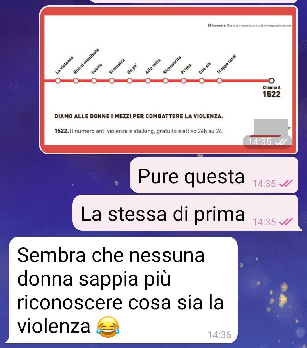 La nostra fan, stagista presso un’agenzia di comunicazione, esprime la sua frustrazione riguardo alle campagne pubblicitarie in vista del 25 novembre, Giornata internazionale contro la violenza di genere. L’amica ha analizzato le iniziative dei grandi brand e racconta di aver provato una profonda tristezza nel notare come tutte seguano lo stesso schema comunicativo. Pur riconoscendo l’importanza di educare le donne al riconoscimento dei segnali di pericolo, la follower si interroga sull’approccio unidirezionale di queste campagne.