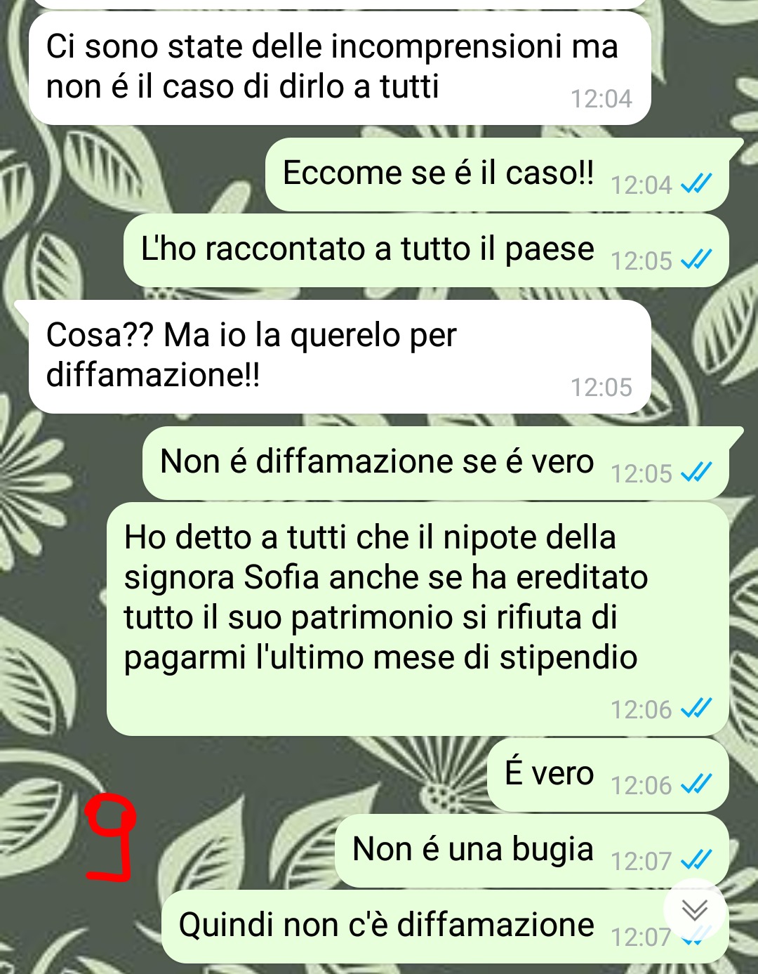 Purtroppo, alcune settimane fa, Sofia è venuta a mancare. È morta serenamente nel sonno, e sebbene Ilda si dica sollevata che Sofia abbia avuto una fine tranquilla, ammette di sentirne la mancanza. Ha trovato difficile anche partecipare al funerale, un momento toccante per ricordare la donna con cui aveva condiviso tanto. Dopo il funerale, Ilda si è messa in contatto con l’unico erede di Sofia, un lontano nipote che si faceva vivo solo di rado. Lo ha contattato per comunicargli il numero di ore lavorate nell’ultimo mese e per chiedere informazioni sul pagamento della liquidazione. Tuttavia, la risposta ricevuta l’ha lasciata senza parole, evidenziando una situazione che Ilda non si sarebbe mai aspettata.