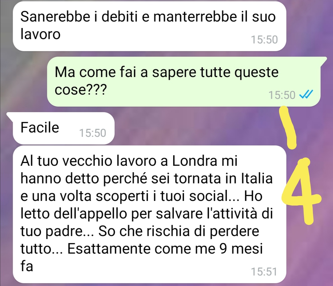 La nostra fan descrive il rientro come un momento di grande dispiacere: non solo per la preoccupazione legata alla salute del padre, ma anche per la sensazione di dover interrompere un percorso che per lei rappresentava crescita, indipendenza e scoperta. Tuttavia, non ha avuto esitazioni: la famiglia, spiega, viene prima di tutto. Una volta tornata, però, è accaduto qualcosa di inaspettato, un episodio legato proprio a uno di quegli eventi “fuori dall’ordinario” vissuti a Londra. Da lì ha avuto origine la chat che ha deciso di condividere con la pagina. Non entra nei dettagli del contenuto, ma lascia intendere che la conversazione contiene qualcosa di sorprendente, forse un collegamento con quel periodo londinese che pensava di essersi lasciata alle spalle.