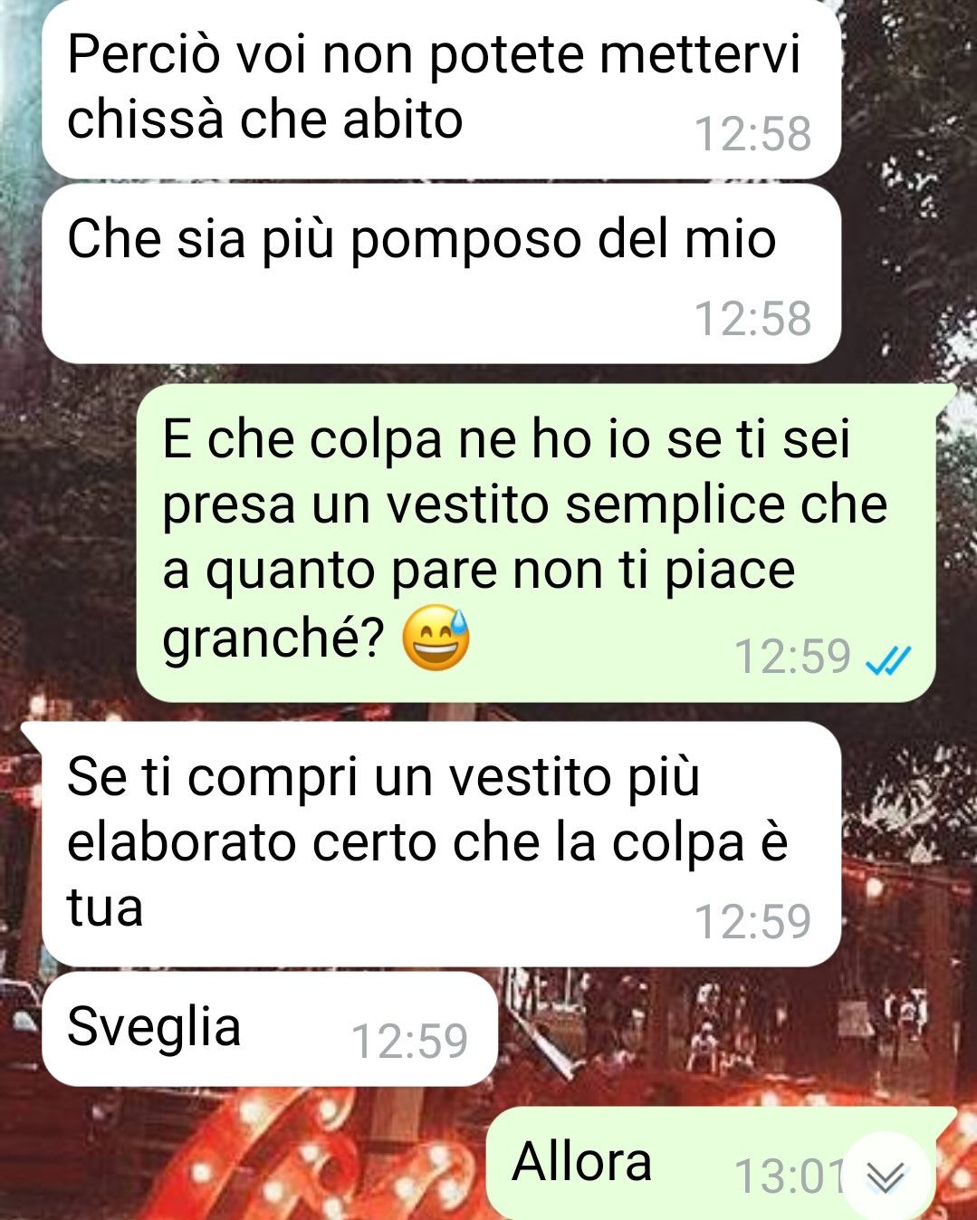 Il nostro fan, una nostra affezionata follower di nome Francesca, ha voluto condividere un episodio che definisce come una “scenetta patetica”, riguardante la sua quasi cognata. Fin dall’inizio, la nostra fan sottolinea come tra loro non sia mai corso buon sangue: pur avendo sempre cercato di mantenere un atteggiamento cordiale per non creare tensioni familiari, ammette di non aver mai provato simpatia per lei.