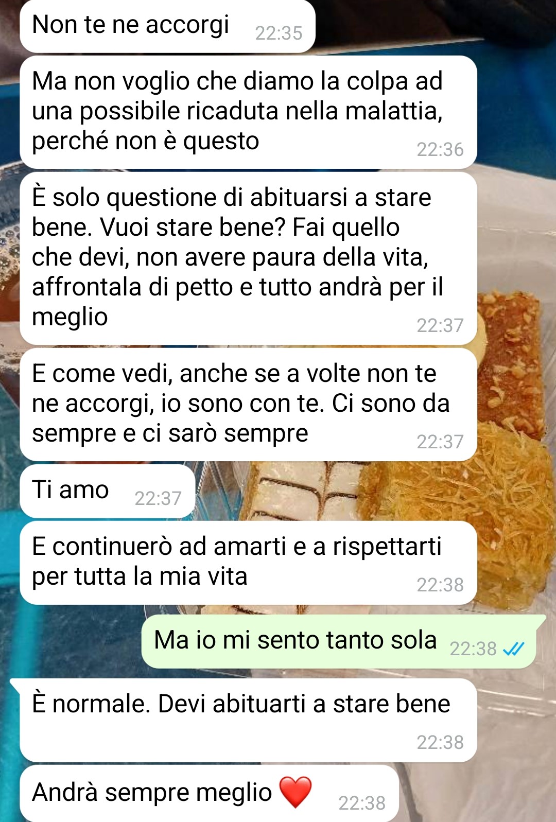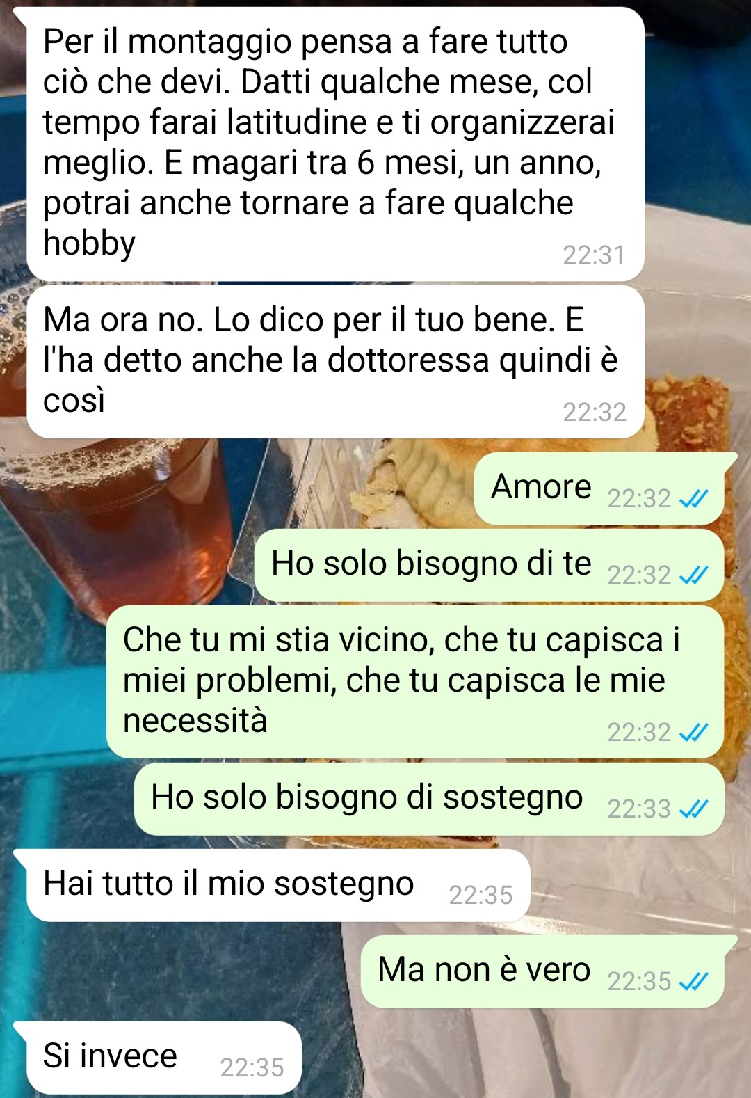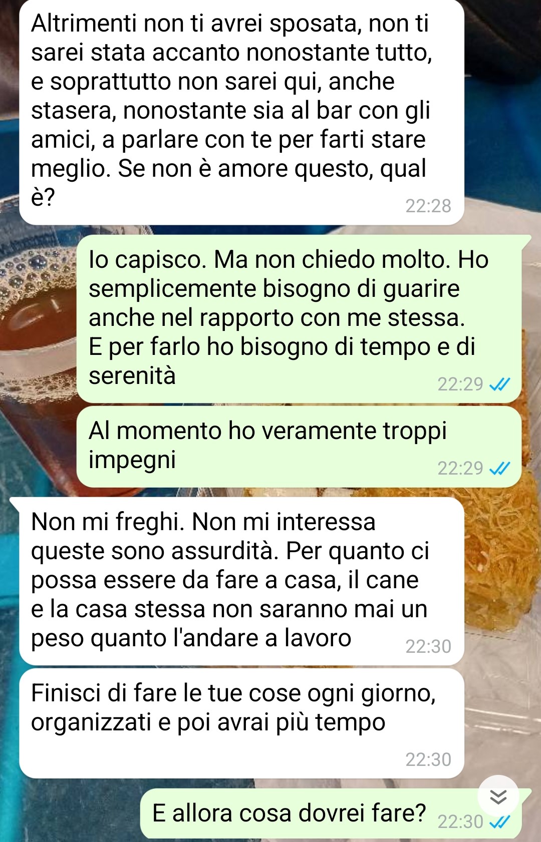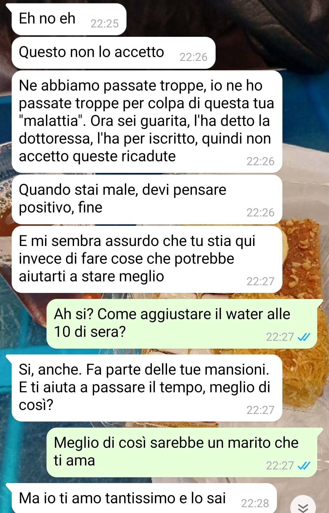 Nonostante tutti questi cambiamenti che dovrebbero teoricamente portarle benessere, la nostra amica continua a sentirsi profondamente infelice e non riesce a comprendere quale sia il problema alla base di questo malessere. La fan trascorre le sue giornate occupandosi delle faccende domestiche e prendendosi cura di Arnaldo, in quella che dovrebbe essere una routine appagante per una persona che, come lei stessa racconta, aveva perso il senso della vita e secondo il parere della dottoressa e del marito lo avrebbe ritrovato. Tuttavia, quando ha cercato di condividere questi sentimenti contrastanti con il coniuge, si è verificata una situazione che ha ulteriormente complicato il suo stato emotivo.