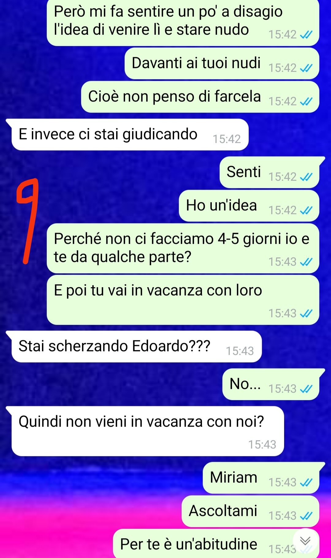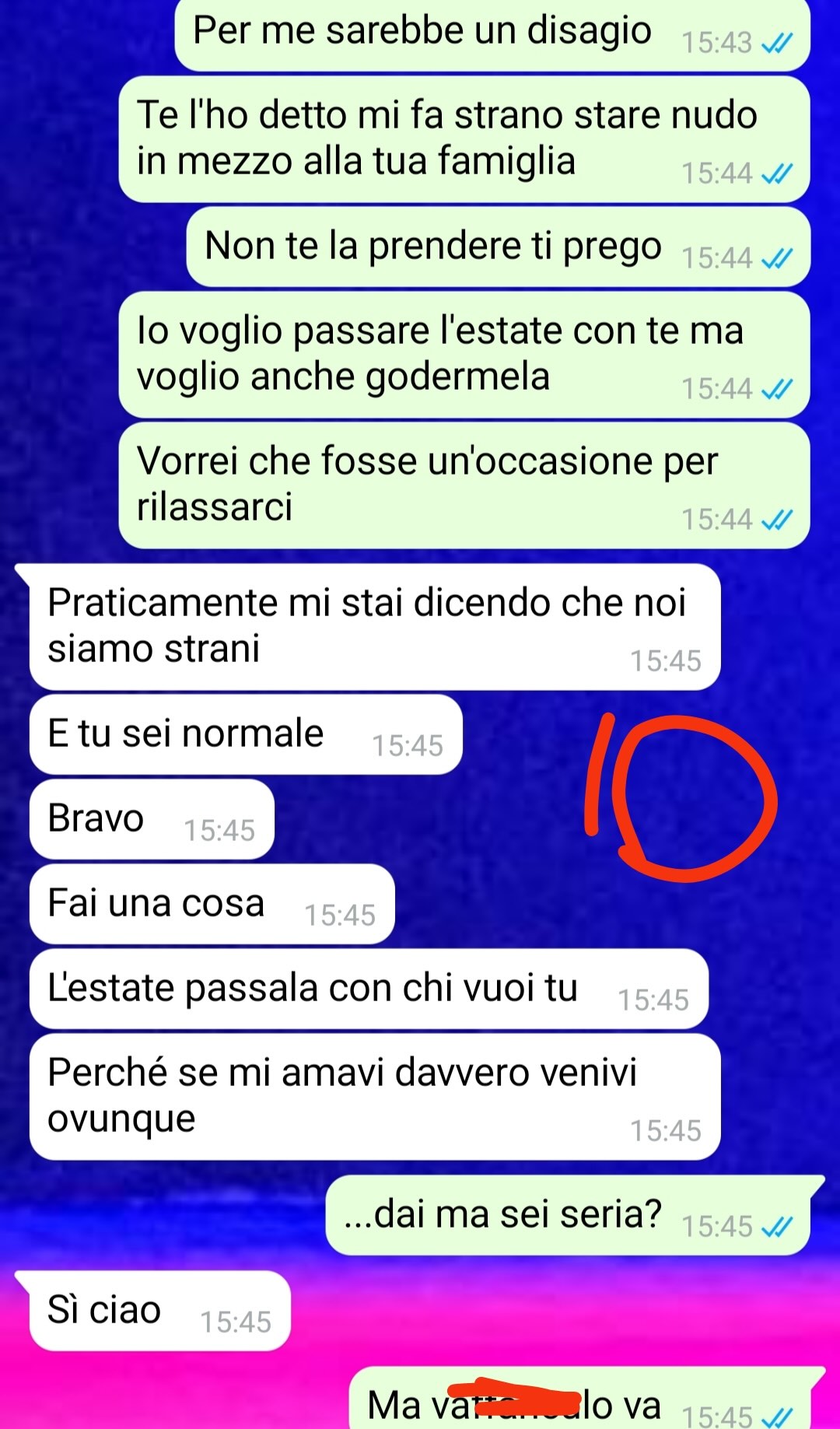 Ma poco prima di raggiungerli, è arrivata quella che definisce una “doccia fredda”. Miriam gli ha scritto, rivelandogli qualcosa che fino a quel momento gli aveva tenuto nascosto. Non spiega di preciso di cosa si tratti, ma lascia intendere che, pur trattandosi di una questione gestibile e non insormontabile, la compagna ha deciso di porre fine alla loro storia proprio a causa di questo nodo non affrontato prima.