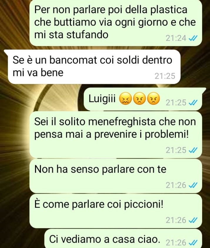 La sua consternazione deriva dalla percezione che Luigi stia mettendo le considerazioni di budget al di sopra del benessere personale e dell’ambiente, un atteggiamento che lei trova difficile da accettare. La situazione ha portato a un impasse nella loro conversazione, con la donna che invita un’analisi esterna sulla ragionevolezza delle priorità di Luigi, chiedendosi se i soldi debbano prevalere su questioni che riguardano la salute e la sostenibilità ambientale.