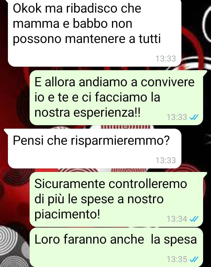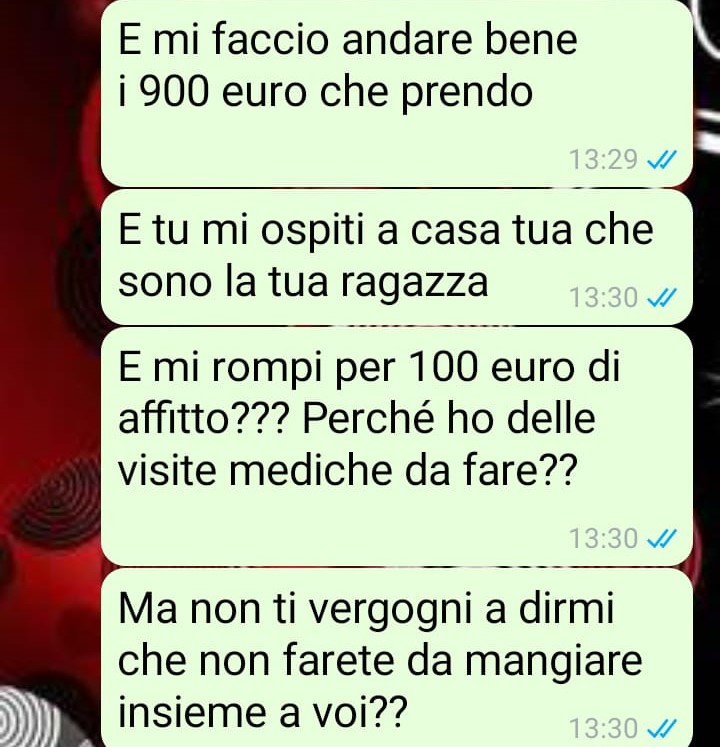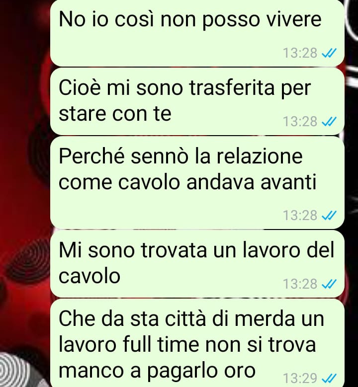 Ed è proprio qui che si accende il problema. Il ragazzo, trovando i soldi lasciati da lei, ha reagito in un modo che la nostra amica definisce poco comprensivo e profondamente deludente. I messaggi che lui le ha inviato – e che ha deciso di condividere con Commenti Memorabili – hanno suscitato in lei un forte malessere, al punto da mettere in discussione tutta la relazione.