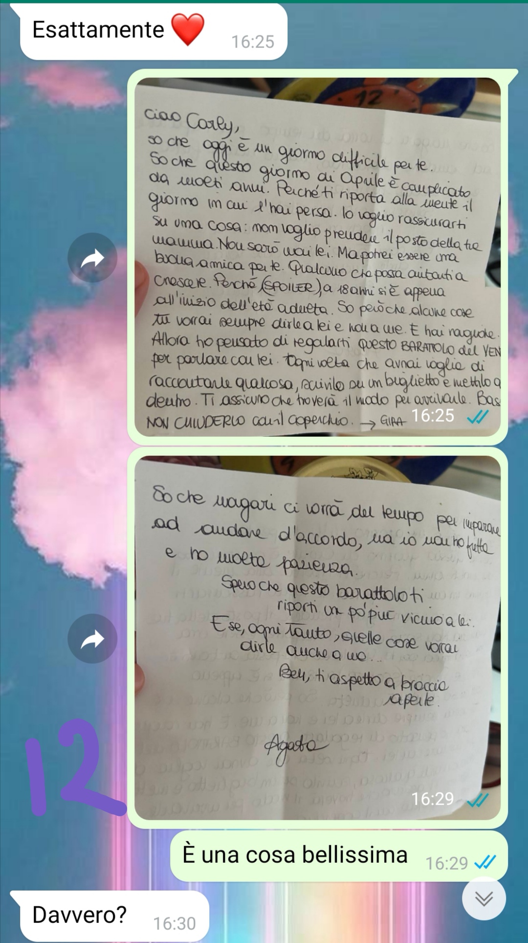 Fin dall’inizio, racconta la nostra follower, Agata ha cercato di farsi benvolere con atteggiamenti amichevoli e apparentemente concilianti, schierandosi spesso dalla sua parte durante i litigi col padre, nel tentativo – evidente, secondo Carlotta – di ottenere la sua approvazione. Un atteggiamento che però ha sortito l’effetto opposto, provocando fastidio e aumentando la distanza tra loro.
