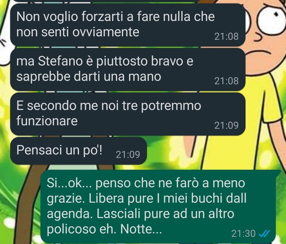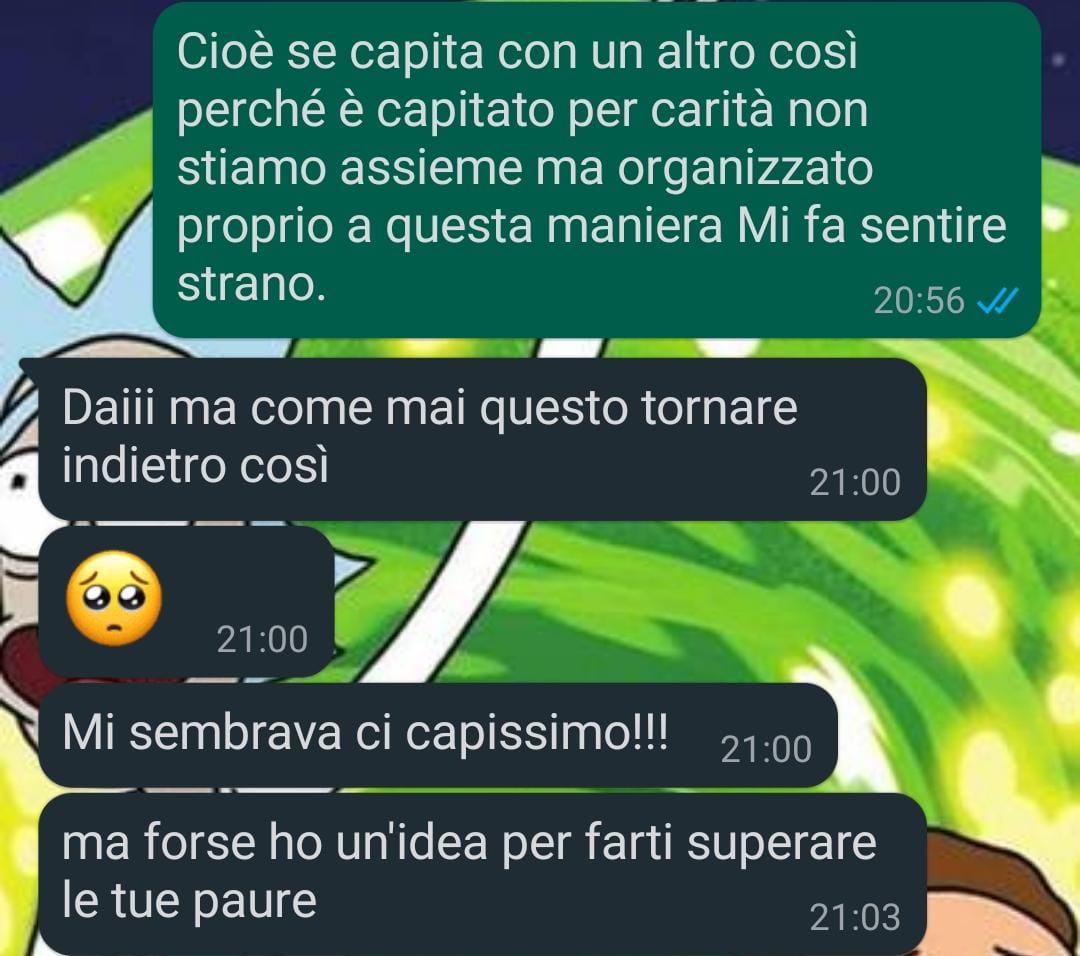 Elena, conosciuta durante una festa tra amici, ha portato quella leggerezza che Giacomo cercava in questo momento della sua vita. Tuttavia, si sottolinea che forse Giacomo ha sopravvalutato la sua apertura verso nuove esperienze, trovandosi in difficoltà di fronte a una richiesta specifica da parte di Elena, situazione alla quale non ha reagito nel migliore dei modi.