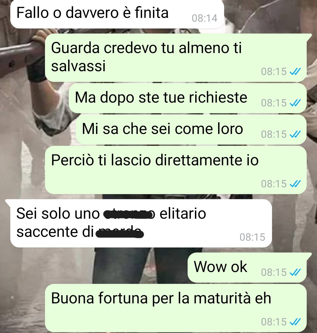 Spiega che il fratello della ragazza non aveva mai mostrato interesse per lo studio, né la minima voglia di applicarsi, e che pensare di poter “recuperare tutto” in due giorni, solo perché si ha un professore in famiglia, gli è sembrato offensivo — non solo per lui, ma per tutti gli studenti che si fanno in quattro per arrivare preparati. Nel racconto emerge anche una certa amarezza nei confronti del sistema scolastico e della mentalità diffusa: dice che oggi un insegnante deve sempre essere “carino e comprensivo”, anche con chi non ha alcuna voglia di imparare, come se lo studio fosse diventato una formalità e non un impegno personale.