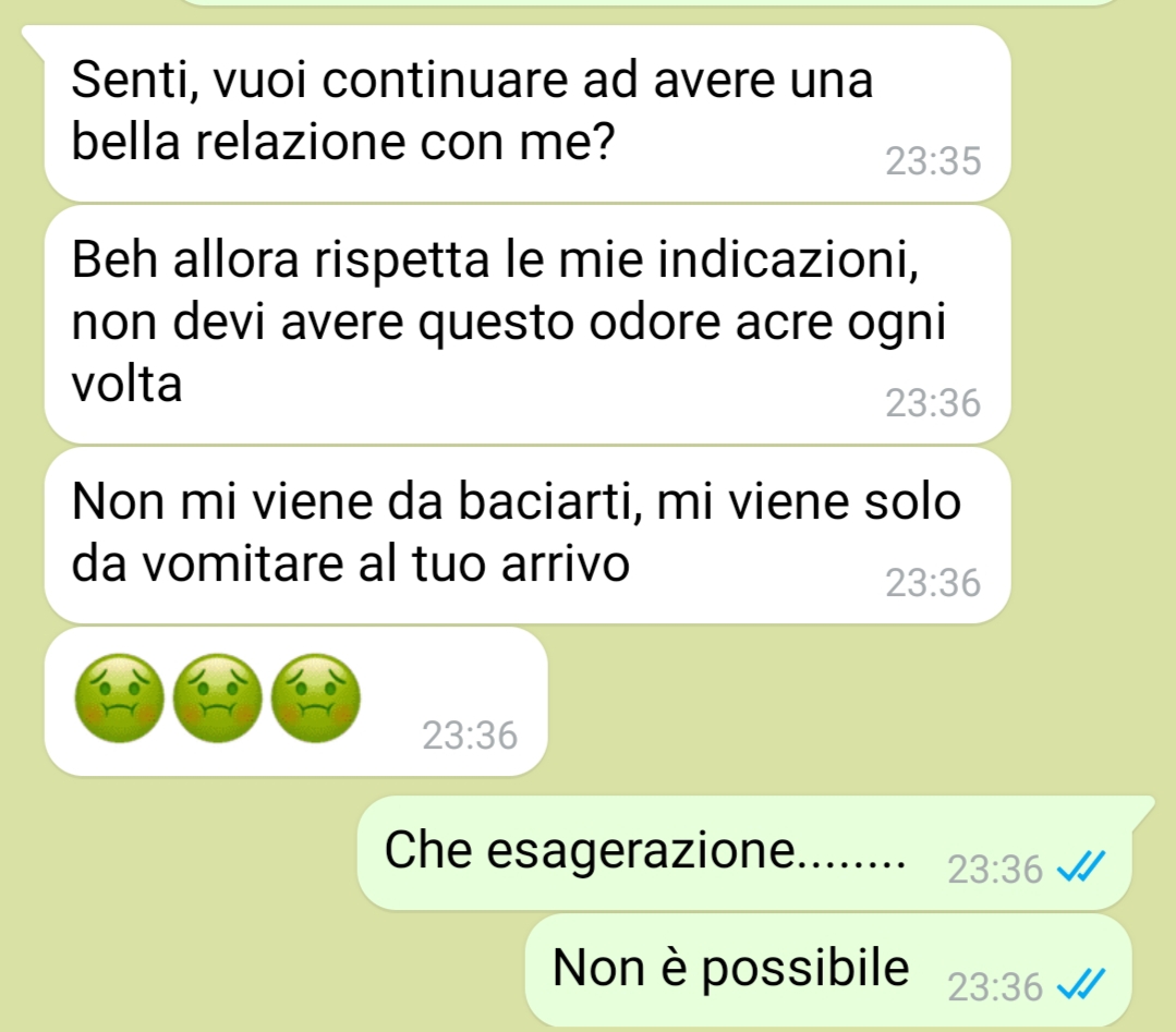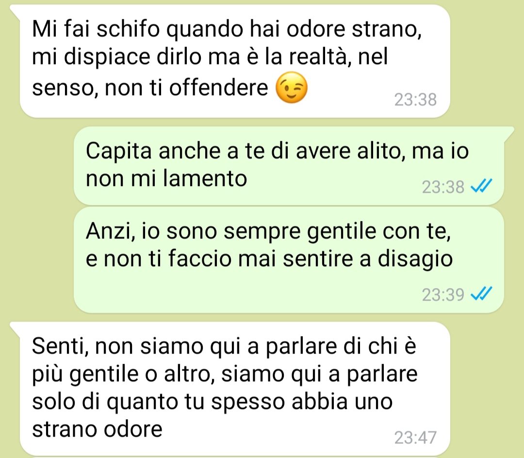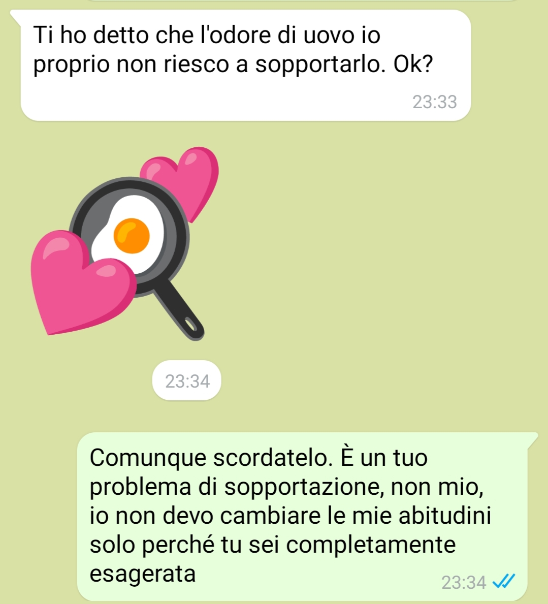 Secondo il nostro amico, ogni occasione sembra essere buona per ricevere un rimprovero, soprattutto legato al suo alito. Anche dopo pasti del tutto normali, come una semplice colazione a base di uova, la compagna lamenta un odore che lui stesso non avverte, tanto da cominciare a chiedersi se il problema sia reale o se non si tratti piuttosto di una reazione esagerata da parte sua.