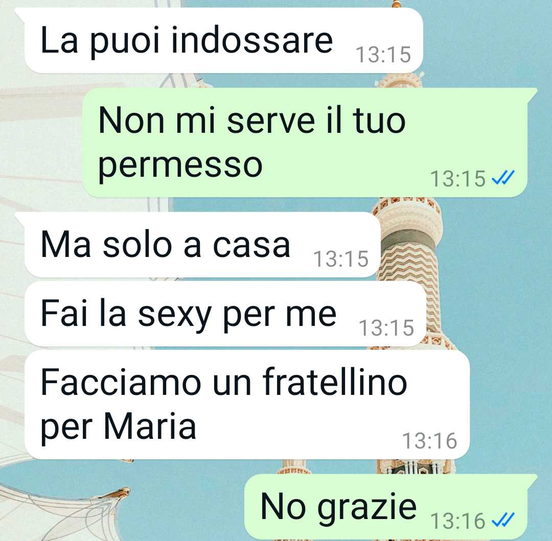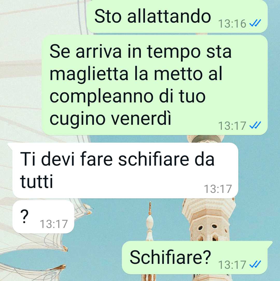 Secondo il racconto della follower, il punto della discussione riguarda il fatto di poter indossare una maglietta che le piace mentre allatta il suo bambino. La nostra fan spiega che il marito sostiene che non sia appropriato, mentre lei non ritiene di dover chiedere il permesso a nessuno per scegliere cosa indossare. Nel suo racconto l’amica precisa che la questione, con il passare del tempo, si è allargata. La nostra fan spiega infatti che la situazione non riguarda più soltanto lei e suo marito, ma ha finito per coinvolgere anche i genitori di lui.