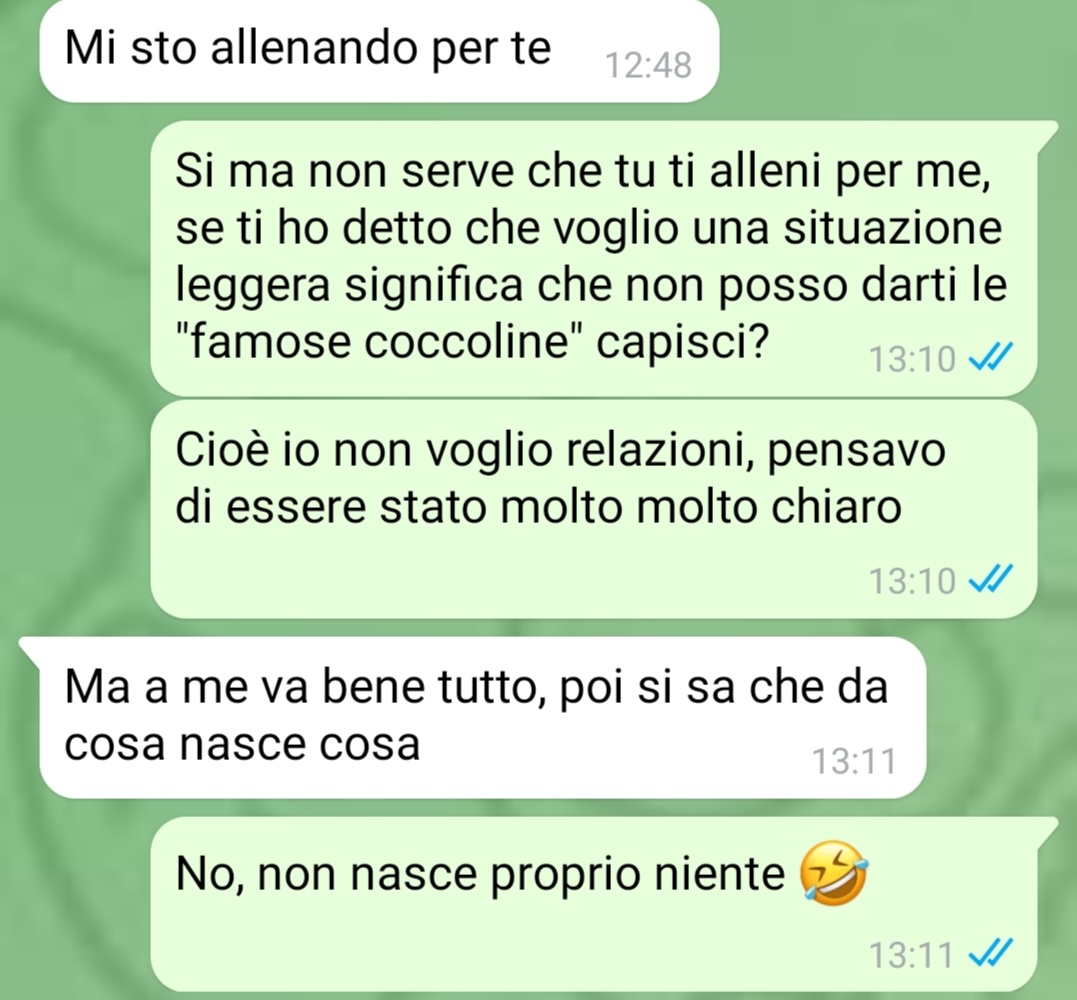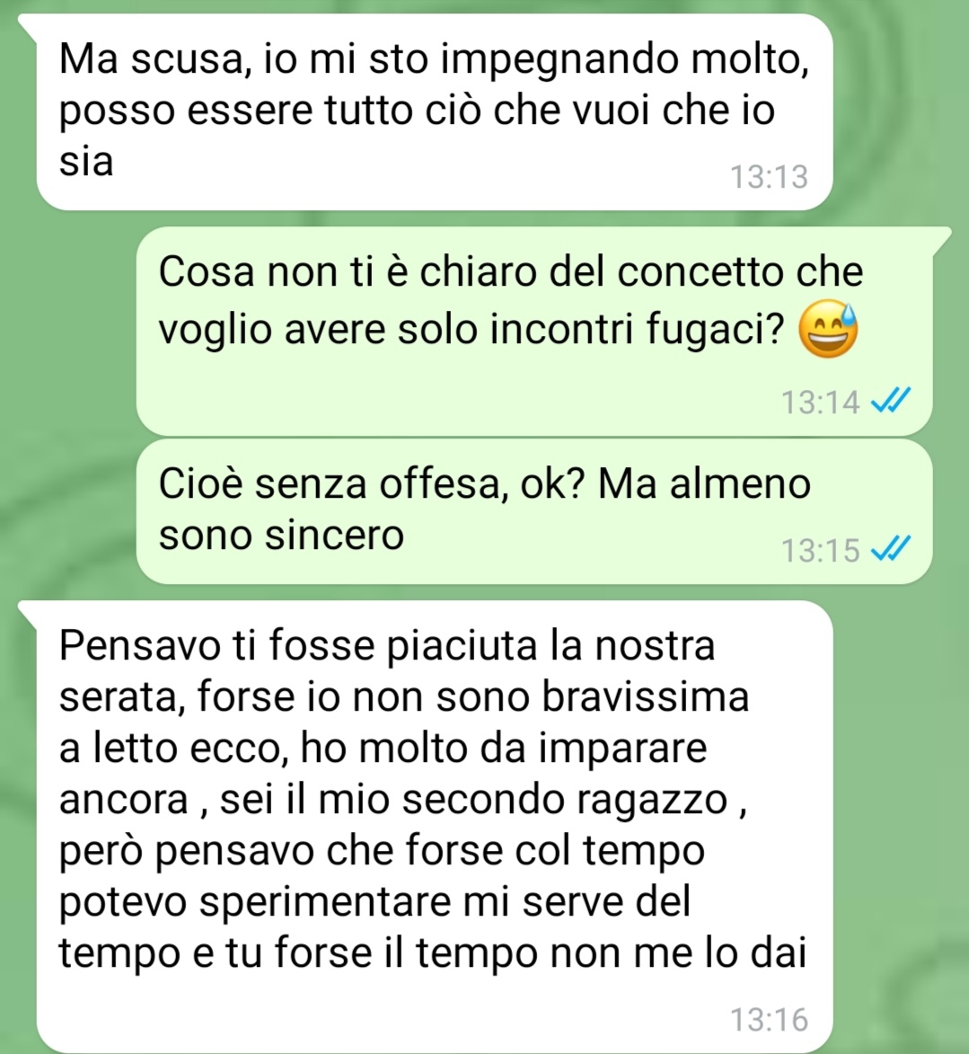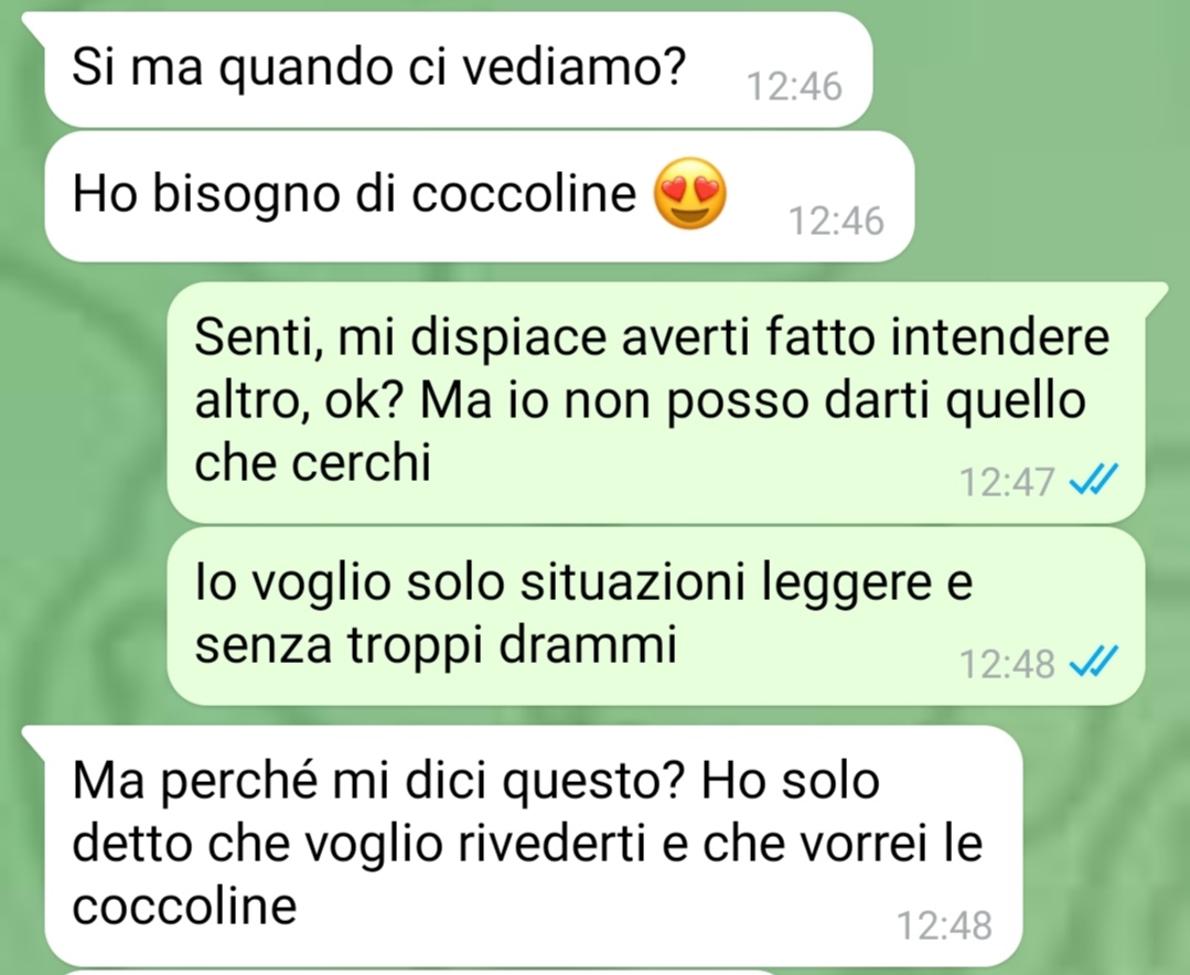 Il nostro fan racconta di aver conosciuto, non molto tempo fa, una ragazza su Instagram. Nel suo messaggio utilizza un tono diretto e descrive l’incontro come qualcosa di casuale, nato senza particolari aspettative. L’amico precisa di considerarsi una persona libera, soprattutto nel modo di vivere le relazioni, e di non provare imbarazzo nel dichiararlo apertamente. Secondo quanto riferisce, il suo approccio è sempre stato improntato alla sincerità: chi accetta il suo modo di essere va bene, altrimenti ognuno è libero di andare avanti per la propria strada.