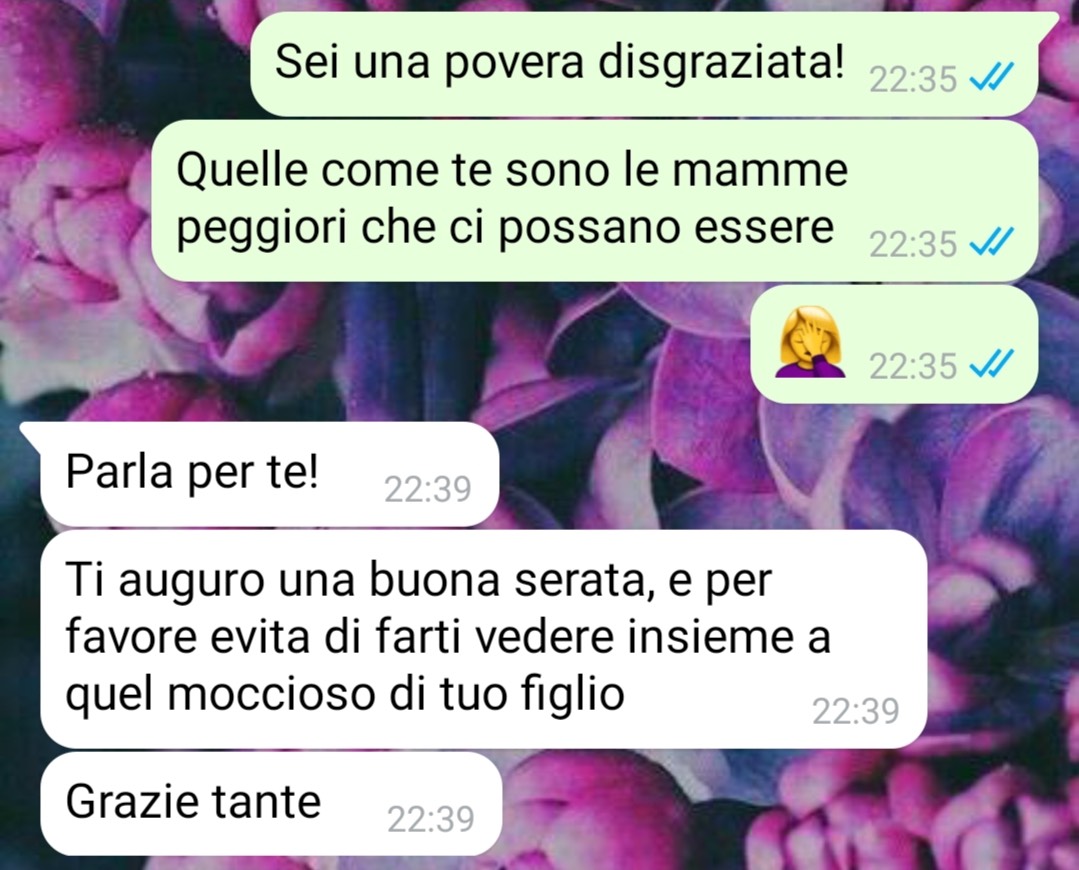 Giovanna è rimasta sbigottita da questo comportamento e, ancora di più, dalla motivazione che ha scoperto. Ritiene che la situazione sia allucinante e un motivo sufficiente per chiudere questa folle amicizia. Condivide la sua esperienza per esprimere il suo sconcerto e cercare comprensione da parte di altre mamme che potrebbero aver vissuto situazioni simili.