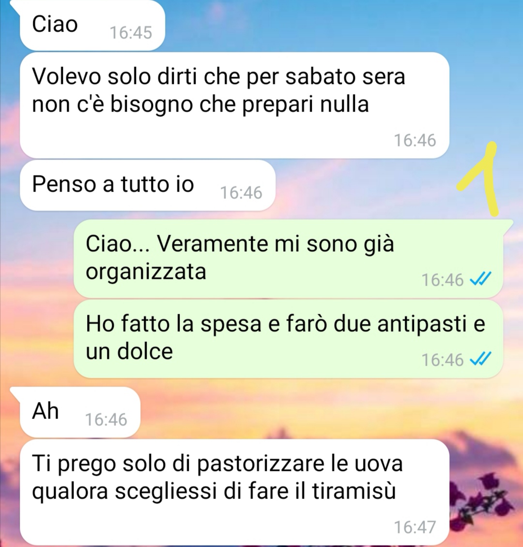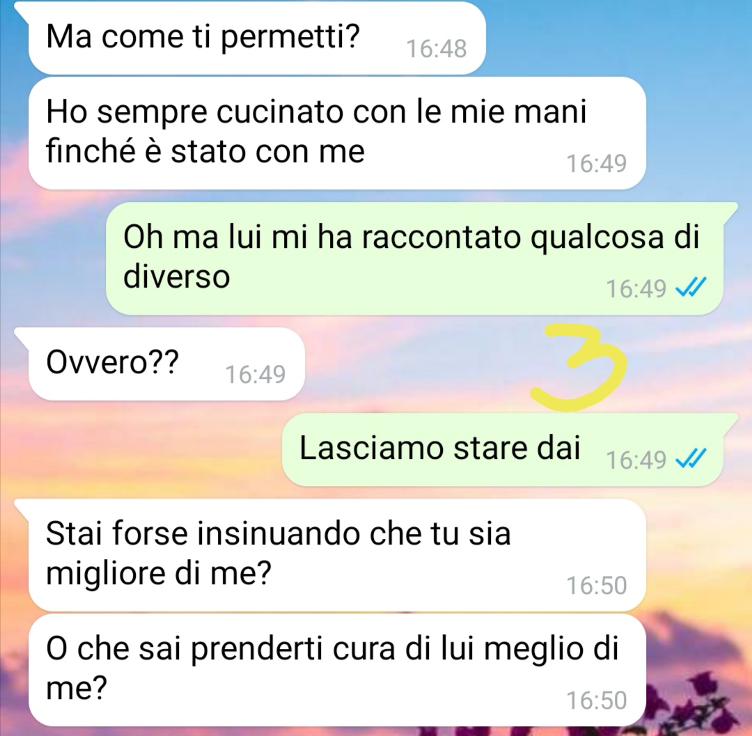 Decido di condividere con voi la mia storia perché sono certa di non essere l’unica in queste condizioni. Ovvero quelle di una fidanzata che deve sempre sentire su dì se l’ombra di un’altra donna. Una donna che è venuta prima di me, che è stata con lui per tanto tempo e fa ancora parte della sua vita come secondo me non dovrebbe. Io capisco tutto, ma secondo me così è troppo. E a volte la goccia che fa traboccare il vaso è davvero legata a una cavolata! Come in questo caso. Si stava avvicinando il compleanno di Tommaso, e avevamo deciso di fare la festa il sabato sera. Una cosa casalinga, tranquilla. E così “l’altra” mi scrive e mi dice di non preoccuparmi per torta e cibo… che pensa a tutto lei! Mi sento offesa perché ancora una volta, e nemmeno troppo implicitamente, mi dice che io non sono buona a niente, nemmeno a preparare un tiramisù. Non ci vedo più e stanca della sua continua presenza e interferenza le dico tutto quello che penso…da leggere fino in fondo per tutte quelle fidanzate che sono costrette a sentirsi sempre le eterne seconde!