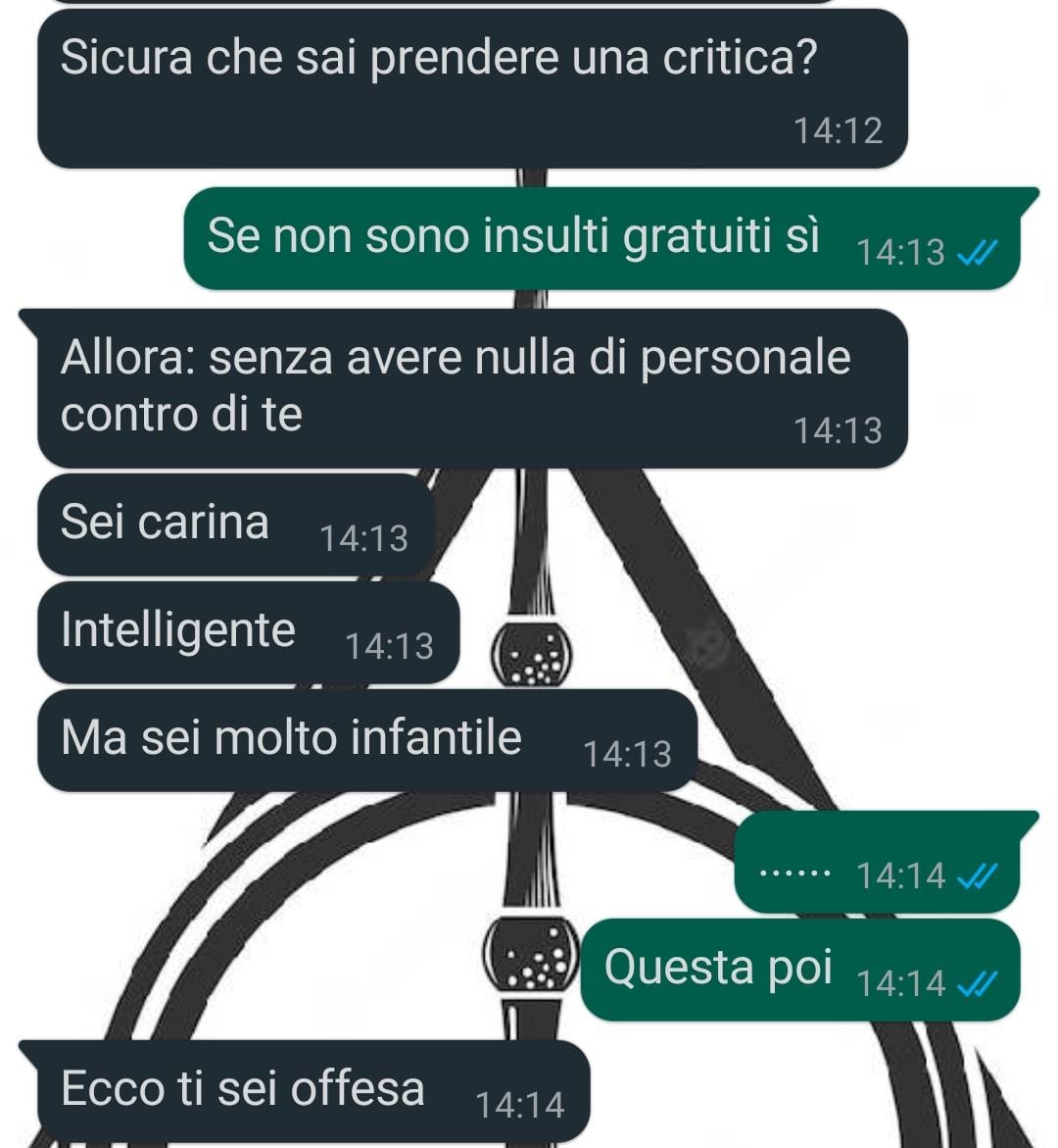Una nostra fan di nome Marica, studentessa, condivide le sue esperienze e sfide personali. Attualmente, è un po’ in ritardo sulla sua tabella di marcia per prendere un master. Nella sua vita, è stata accusata di molte cose: di ridere troppo forte, di dare troppa confidenza ai ragazzi, e di illuderli. Marica si trova spesso a preoccuparsi perché le piace la compagnia maschile e discutere di film, serie TV, fumetti e videogiochi, attività che alcuni considerano non appropriate per una “signorina”.
