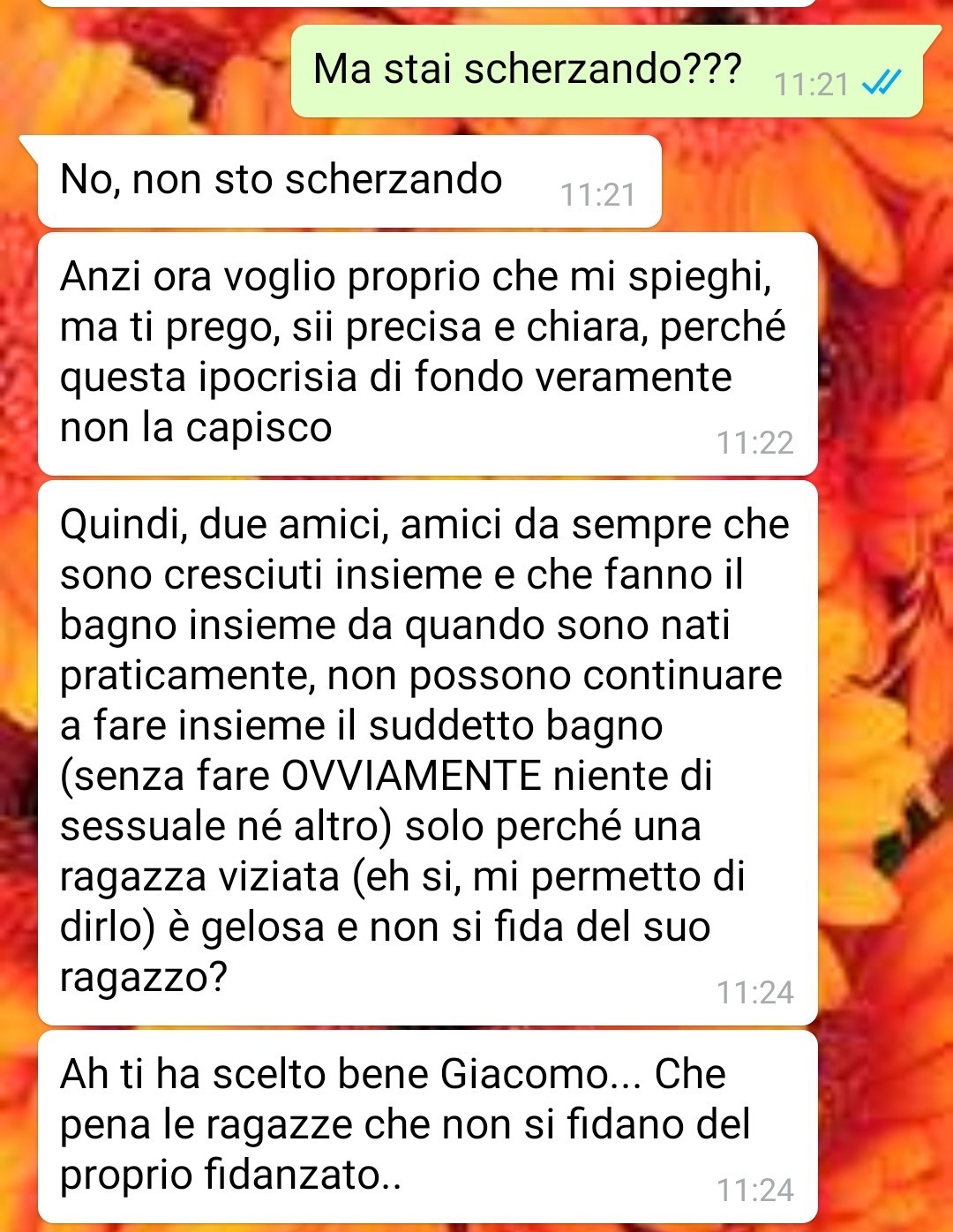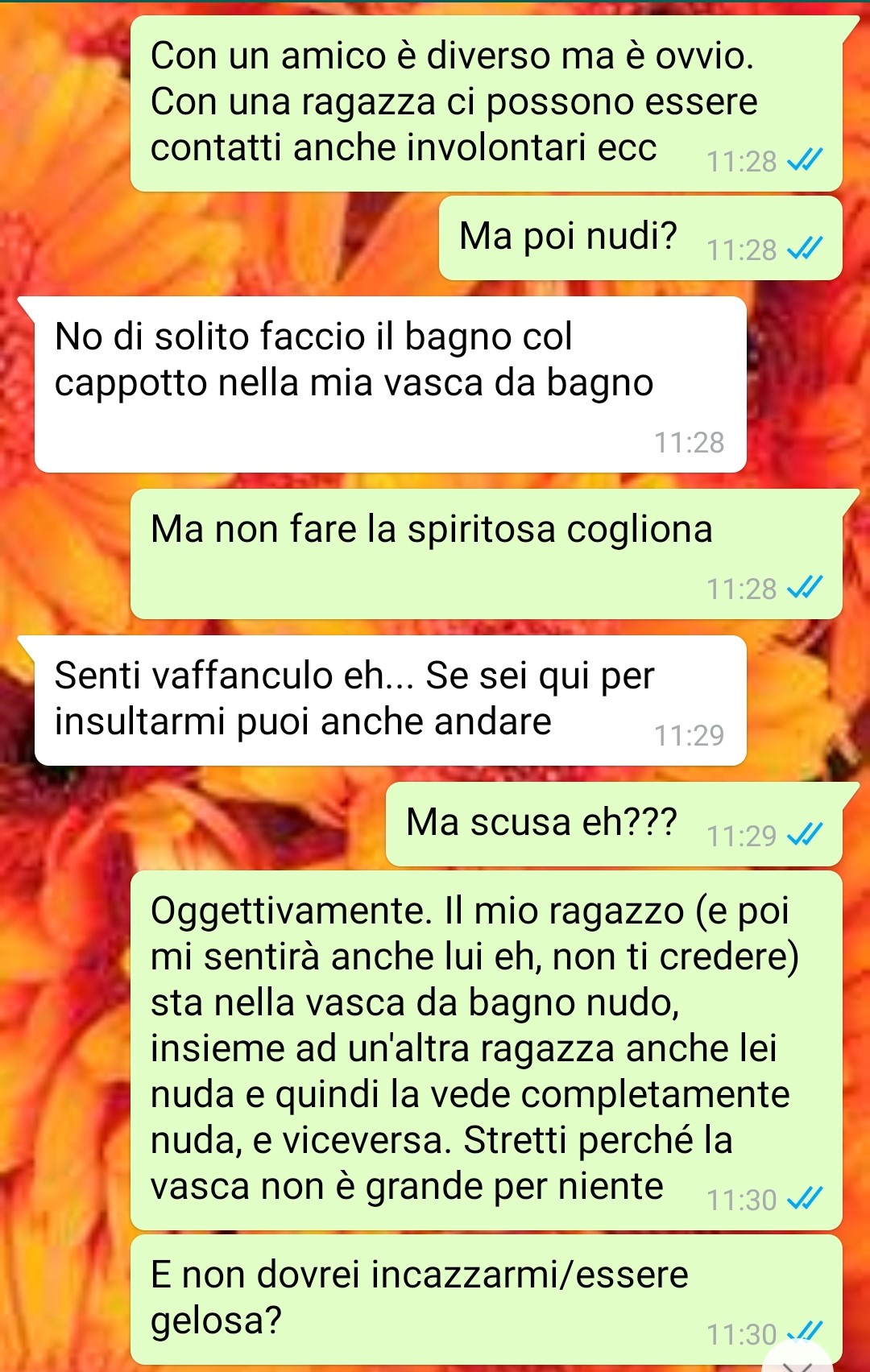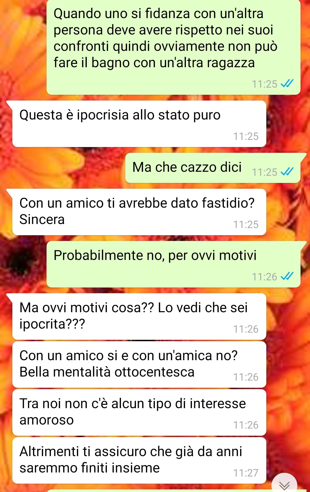 Veronica assicura di essere certa, attraverso ulteriori discussioni con entrambi, che non sia successo nulla di più serio rispetto a quanto menzionato nella discussione. Nonostante ciò, si sente profondamente ferita e presa in giro per l’evento in questione. Sottolinea con convinzione che, in una relazione, ci sono delle regole da rispettare che vanno oltre qualsiasi cosa.