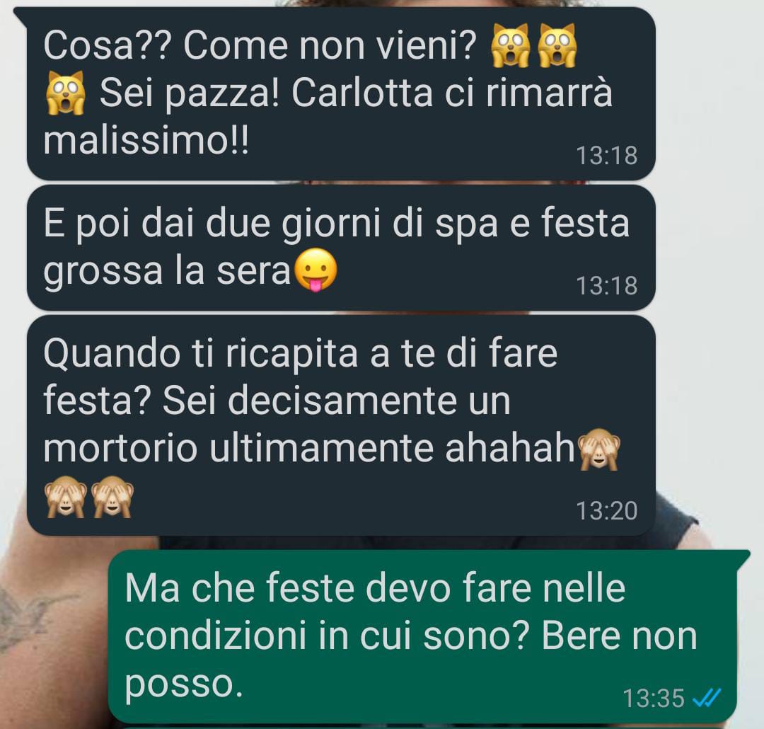 Mi chiamo Beatrice e voglio raccontarvi questa situazione su Spunte Blu, perché mi piacerebbe avere un parere esterno.Allora, facciamo un po’ di contesto: nel mio gruppo di amiche stiamo tutte crescendo, le priorità cambiano e veniamo tutte da background diversi, anche economicamente.Ora si sposa Carlotta, che viene da una famiglia benestante, sia lei che il futuro marito. Il matrimonio sarà un evento di lusso, ma va bene così, Carlotta è una ragazza intelligente e non ha pretese particolari dai suoi invitati, se non la loro presenza. Però c’è un piccolo problema: Erika.Erika è più amica di Carlotta che mia. Frequentiamo lo stesso gruppo, e per rispetto a Carlotta cerco sempre di mantenere buoni rapporti, anche con Erika. Ma con l’organizzazione dell’addio al nubilato, Erika ha davvero superato il limite…Prima di tutto, io sono incinta, al quarto mese. Non pretendo certo che tutto sia organizzato in base a me, ma un minimo di considerazione per la mia condizione non sarebbe male. E poi ci sono state altre pretese assurde da parte di Erika. Giuro, non riuscivo a credere a quello che leggevo! Mi sembrava un comportamento esagerato persino per lei, ma invece stava proprio andando in quella direzione.Comunque, vi lascio leggere gli screenshot che ho salvato, così capirete meglio.