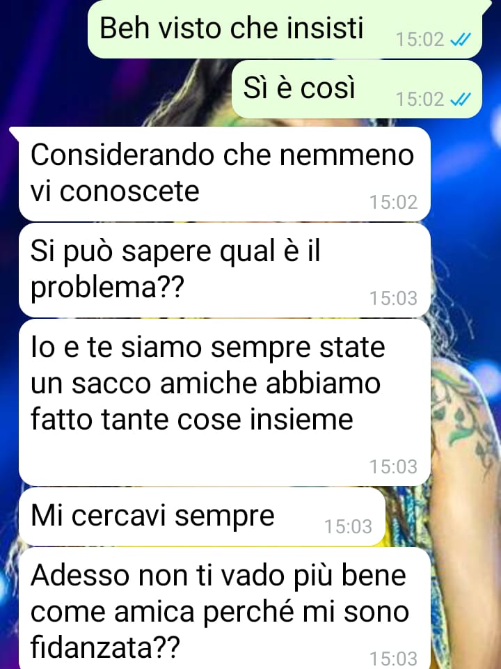 Nel suo racconto, la nostra follower ammette che qualcuno potrebbe pensare che la situazione sia dipesa anche da lei. Racconta infatti di essere stata la prima a prendere le distanze negli ultimi tempi. Questa scelta, come spiega la nostra fan, non è stata fatta a cuor leggero, ma è maturata dopo una serie di riflessioni personali. Il suo allontanamento è stato notato dall’altra persona coinvolta, Barbara, l’amica con cui ha avuto lo scambio di messaggi a cui fa riferimento.
