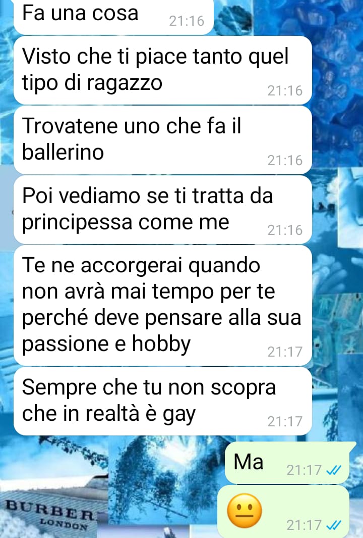 Dopo averne parlato con alcune amiche, si è sentita dire che forse ha esagerato nella sua reazione. Ma dentro di sé una vocina continua a sussurrarle che non sta sbagliando, che non si è trattato di una semplice battuta infelice ma della rivelazione di un modo di pensare che non sente più affine. Ora fatica persino a rivolgergli la parola, sopraffatta da un senso di nervosismo e amarezza.