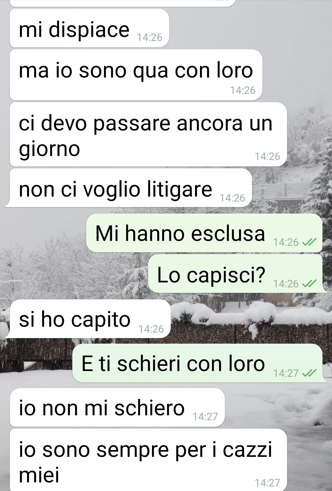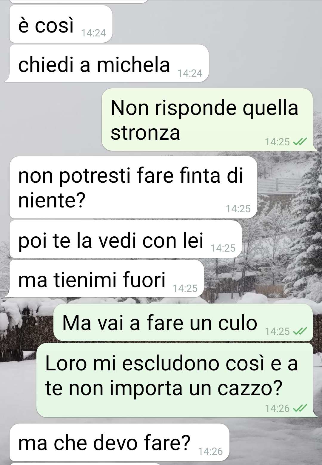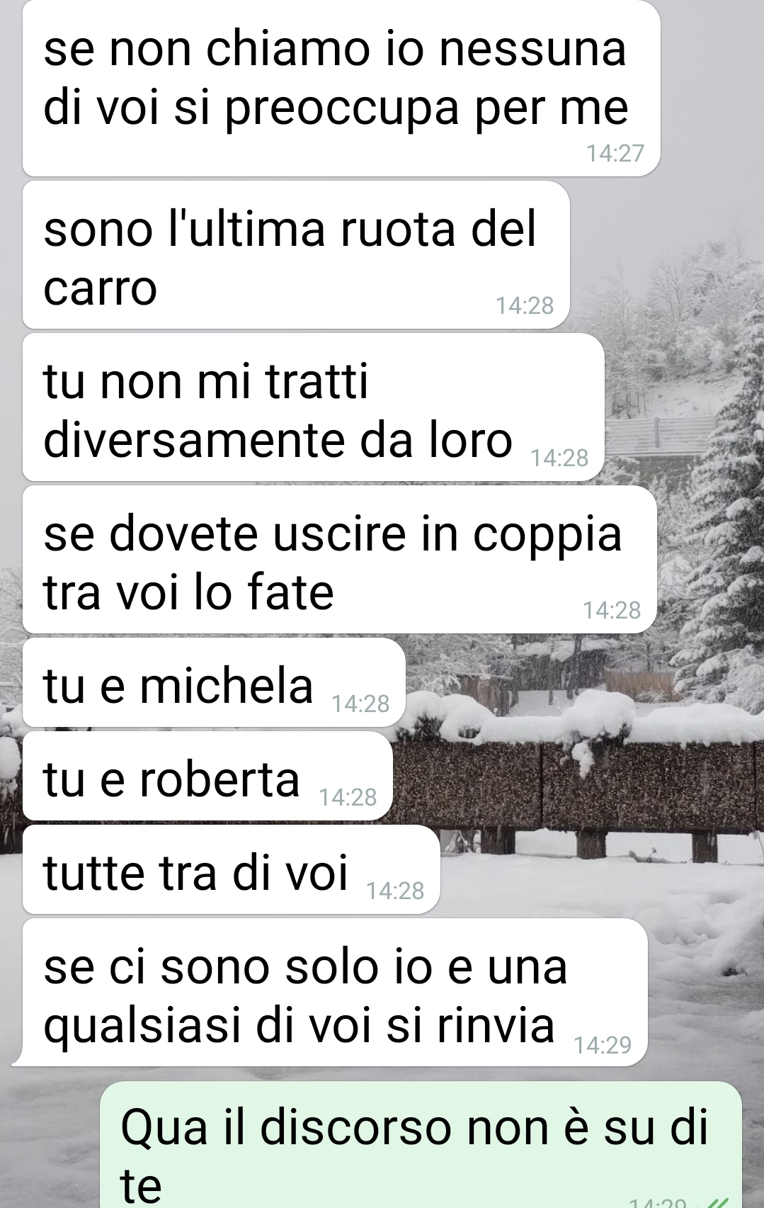 La delusione è stata ancora più grande perché Eleonora ha realizzato che non si è trattato di una dimenticanza o di un equivoco, ma di un’esclusione voluta e pianificata. La sensazione è che, per non affrontarla direttamente, abbiano lasciato il compito a Federica, che lei descrive come la meno intima del gruppo. Una persona che forse è stata usata inconsapevolmente, oppure ha scelto di schierarsi con le altre per non ritrovarsi a sua volta esclusa.