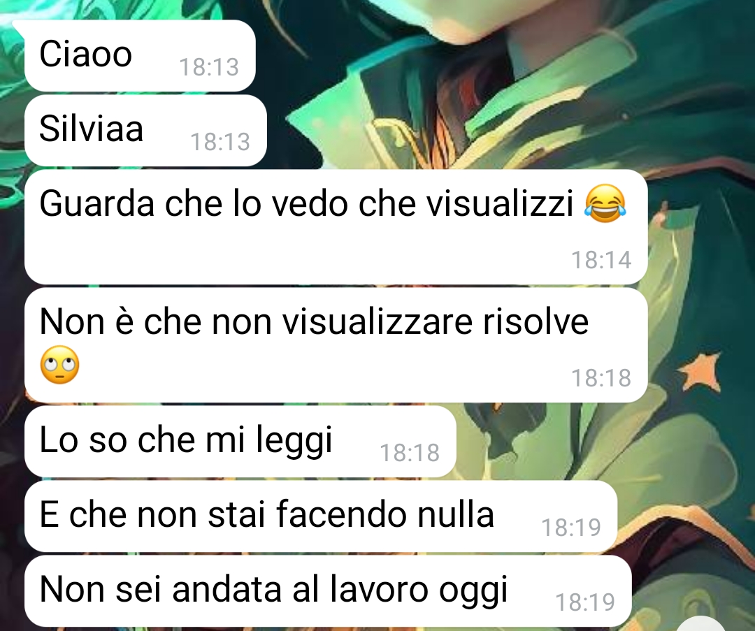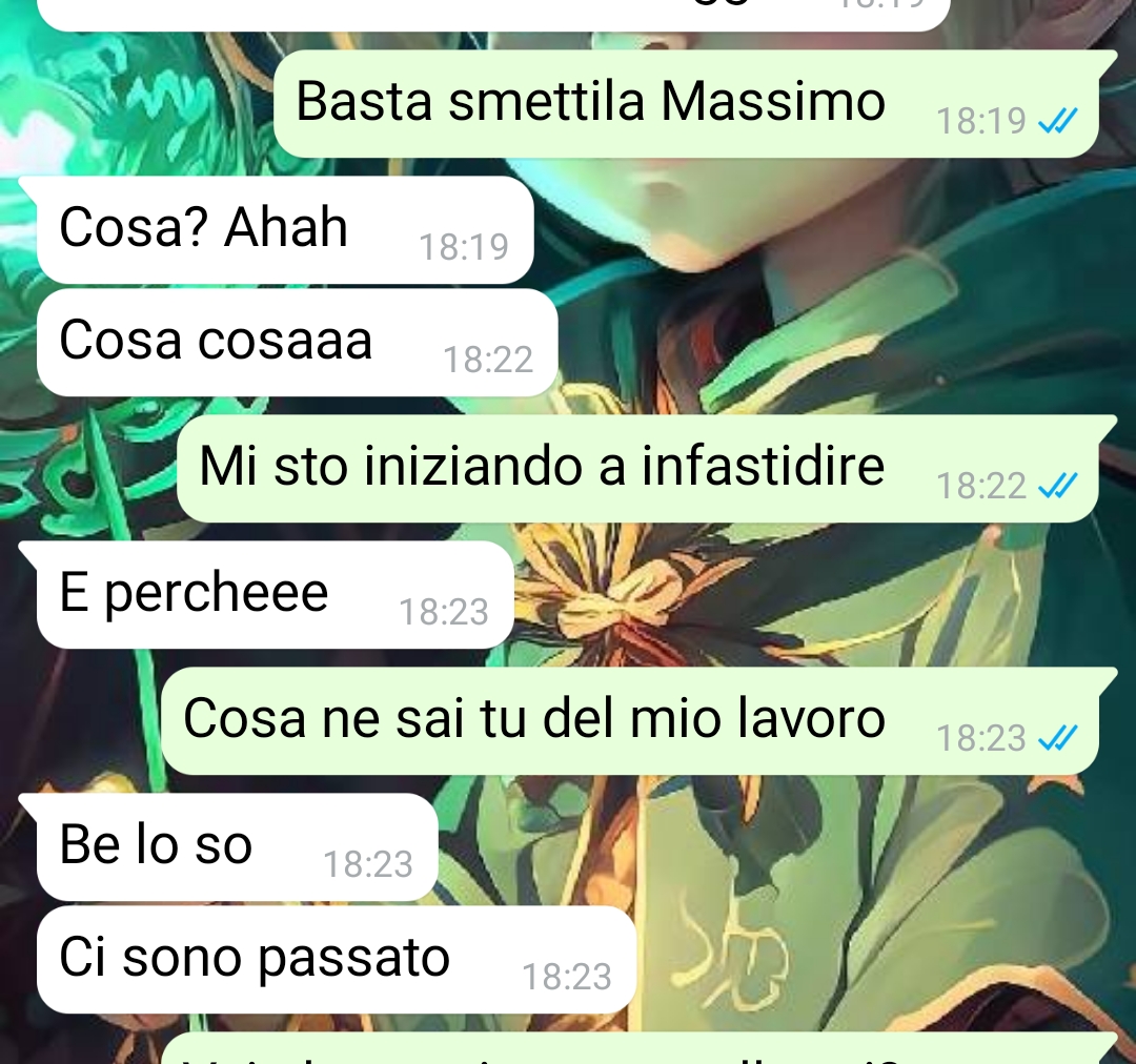 Sono Silvia e vi metterò al corrente di quelli che sono stati i miei ultimi sei mesi. Mesi di paura e timore. All’inizia è iniziata nel modo più semplice e non era nulla di che, poi è andata peggiorando e il bello è che di fronte alla legge non posso fare assolutamente niente, perché la persona in questione è davvero molto furba. Sto parlando di Massimo, un ragazzo che è stato mio collega per un paio di giorni quando ho trovato impiego come segretaria in un ufficio stile call center. Sono stata lì due giorni soltanto e sono andata subito via e ho trovato impiego in un altro posto, un negozio in centro. Tutto andava bene finché in questo negozio arriva lui e attacca bottone. Poi me lo ritrovo al mio supermercato così casualmente, poi quando sono in giro con i miei amici, poi al cinema e addirittura anche se i posti erano assegnati lui voleva sedersi accanto a me, anche se c’era altra gente in quei posti. A una certa, per disperazione pensando di farlo contento, gli ho dato il mio numero e invece ha iniziato a tartassarmi più di prima. Finché non mi contatta un giorno e inizia a essere davvero inquietante.