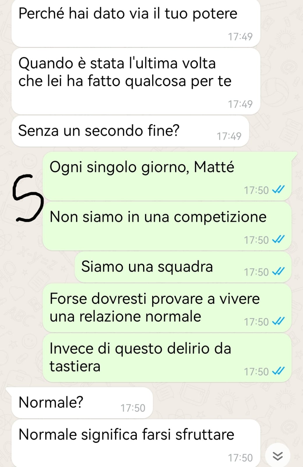 Il nostro fan racconta di come il suo amico Matteo sia cambiato radicalmente negli ultimi mesi. Una volta i due amici trascorrevano le serate parlando di videogiochi, concerti, viaggi e progetti futuri, condividendo una bella amicizia. Tuttavia, l’amico ha iniziato a seguire determinati video su YouTube e a frequentare forum particolari, trasformandosi gradualmente in una persona che si considera una sorta di guru con la verità assoluta sulla vita e sulle relazioni sentimentali.