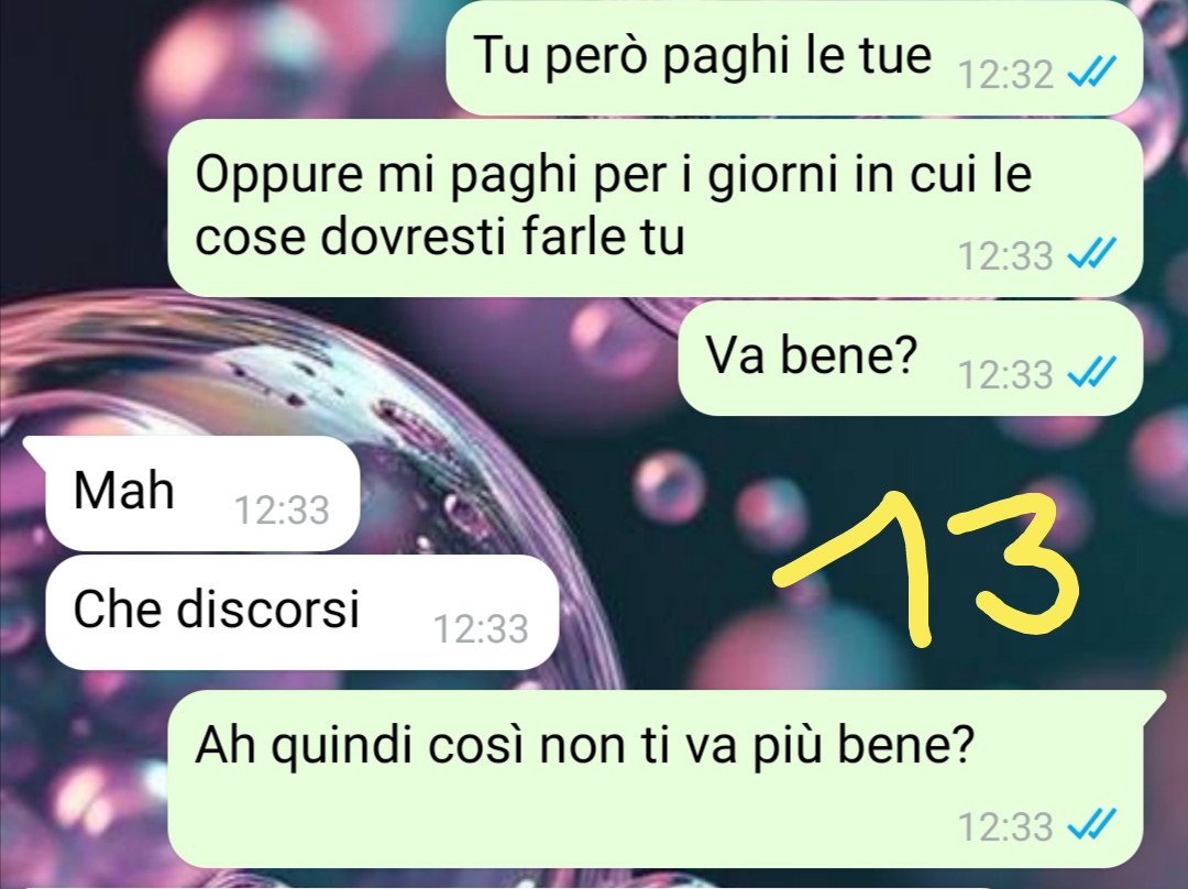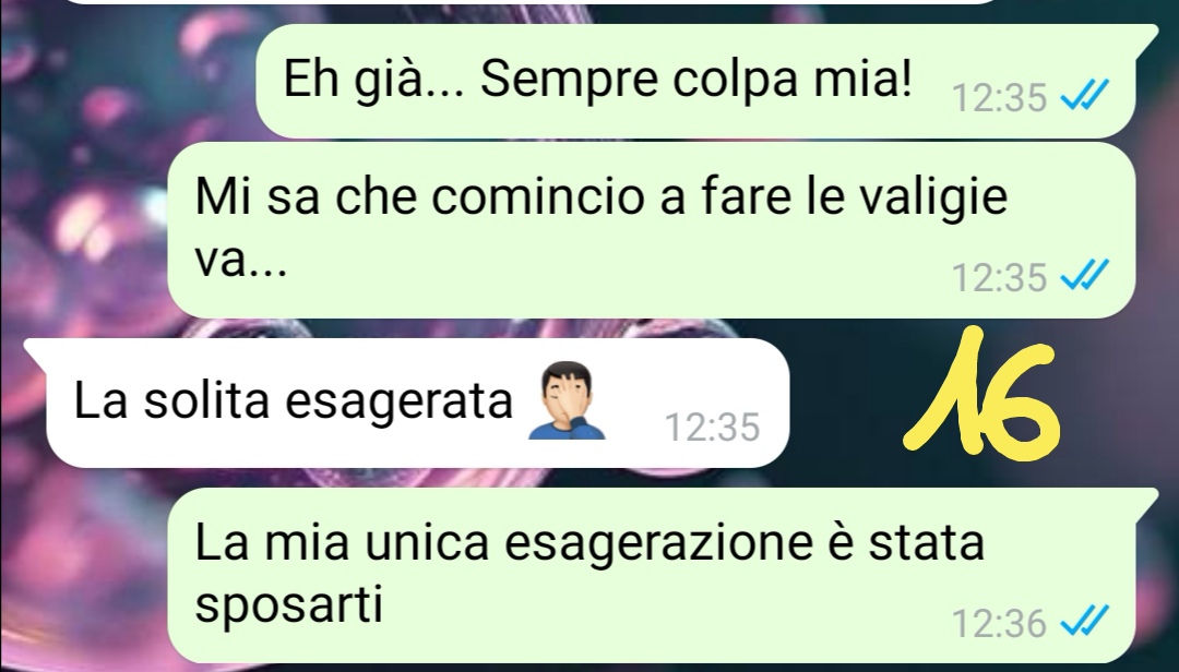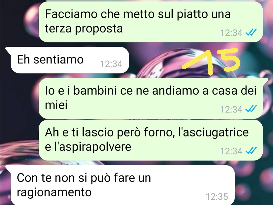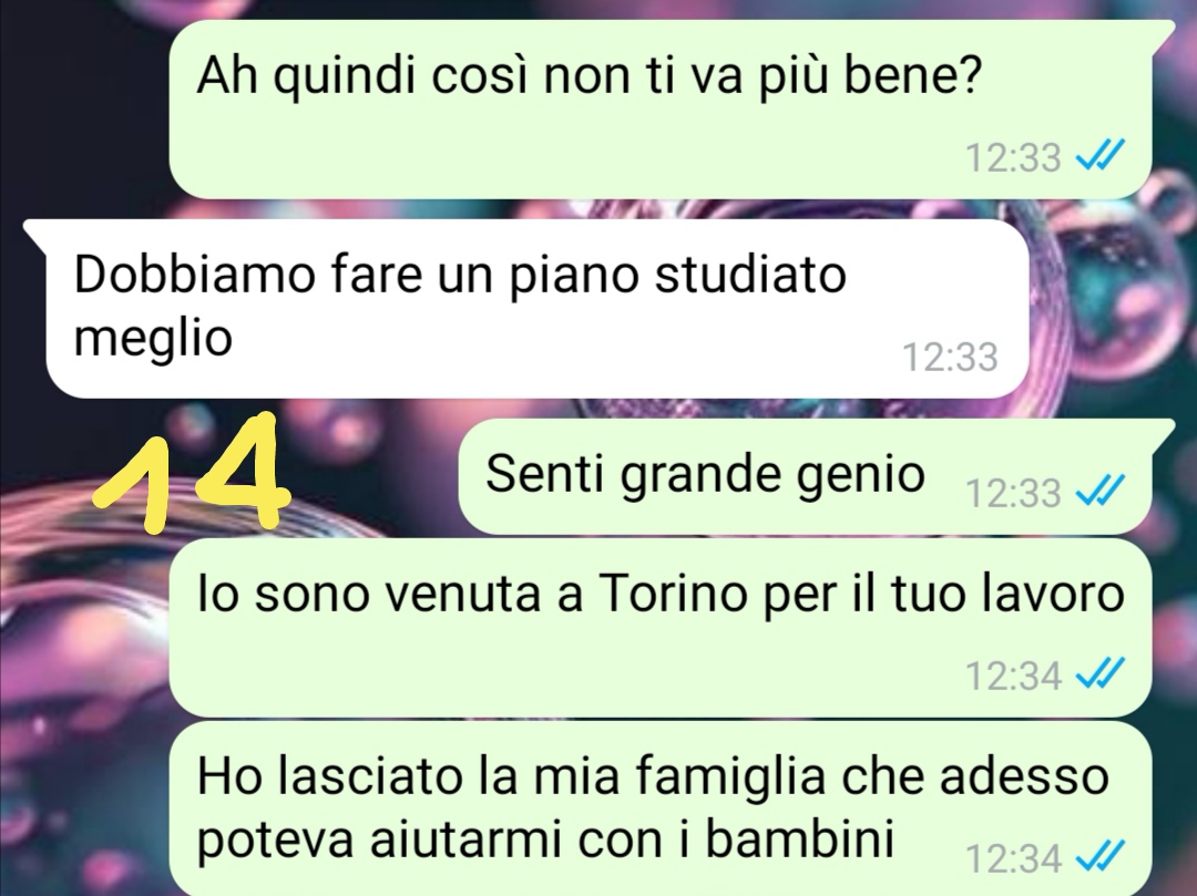 La nostra follower racconta che si è trovata a essere sola con due bambini piccoli, in una città lontana dalla sua famiglia, e a volte si sente sovraccaricata. Non le dispiace che il marito lavori, ma è convinta che l’equilibrio fra lavoro e famiglia debba essere mantenuto. Eppure, ha ritenuto che la proposta ricevuta fosse qualcosa di intollerabile, che ha colmato il vaso della pazienza e messo in discussione i presupposti stessi del loro matrimonio.