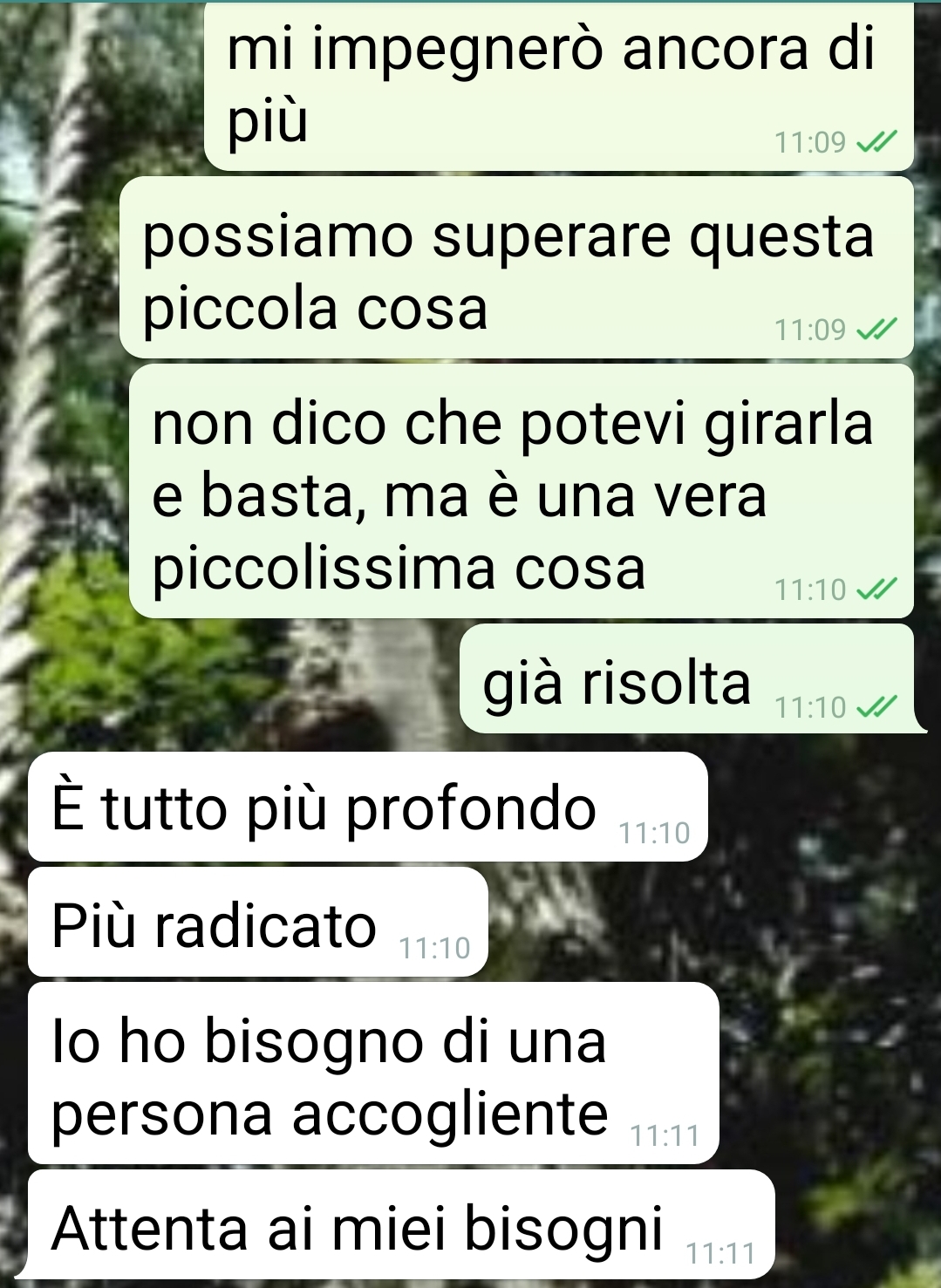 Il nostro amico racconta anche di aver pensato a un gesto più concreto: andare alla stazione e raggiungerla direttamente a casa. Si è spinto fino a lì, ma alla fine non ha comprato il biglietto. Un’azione rimasta sospesa, simbolo della confusione e dell’indecisione che lo attraversano. Lui stesso ammette di sentirsi “incasinato”, incapace di mettere ordine nei pensieri e nelle emozioni.