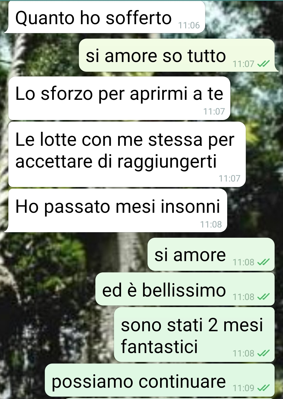 Nel suo racconto emerge con forza il sentimento che prova per lei. Dice di amarla profondamente e di essersi sentito l’uomo più felice del mondo quando si sono fidanzati. Un momento che ricorda come uno dei più belli della sua vita, così come la scelta di lei di raggiungerlo nel luogo in cui vive e lavora. Un progetto condiviso che ora sente vacillare.