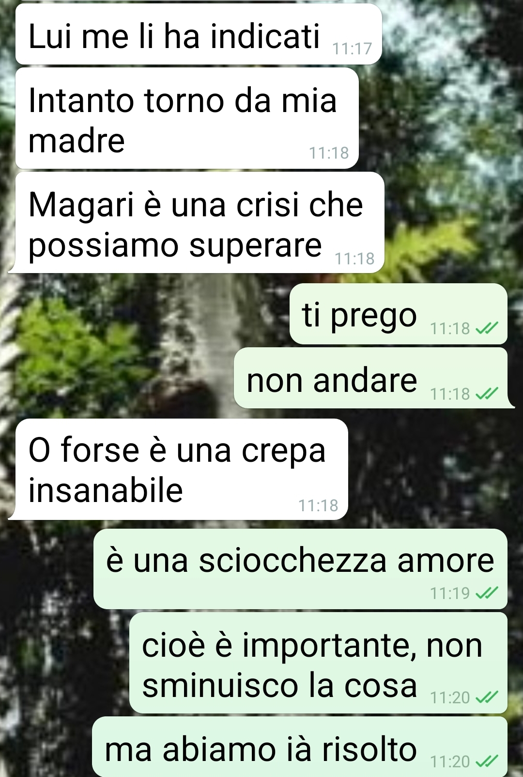 Nel descrivere la sua compagna, il nostro amico usa parole molto forti: la definisce una creatura dolce e indifesa, una persona che ha attraversato anni difficili e che, secondo lui, ha bisogno di sostegno e presenza. Sottolinea di non vederla come una persona instabile o in cerca di pretesti, ma come qualcuno che ama sinceramente.
