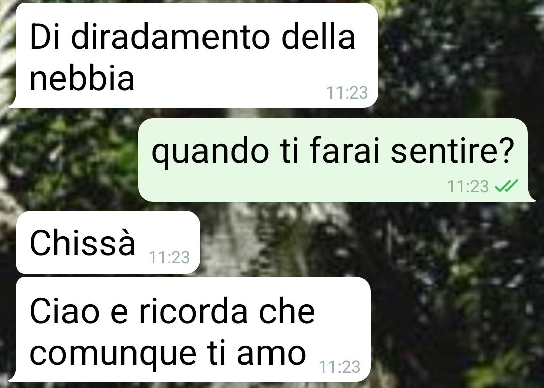 Il silenzio di lei, però, lo tormenta. Si chiede perché non torni, perché non lo chiami, perché questa distanza continui. La sua testimonianza è il ritratto di un’attesa carica di angoscia, in cui l’amore, la paura di perdere e il senso di impotenza convivono senza trovare una via d’uscita.