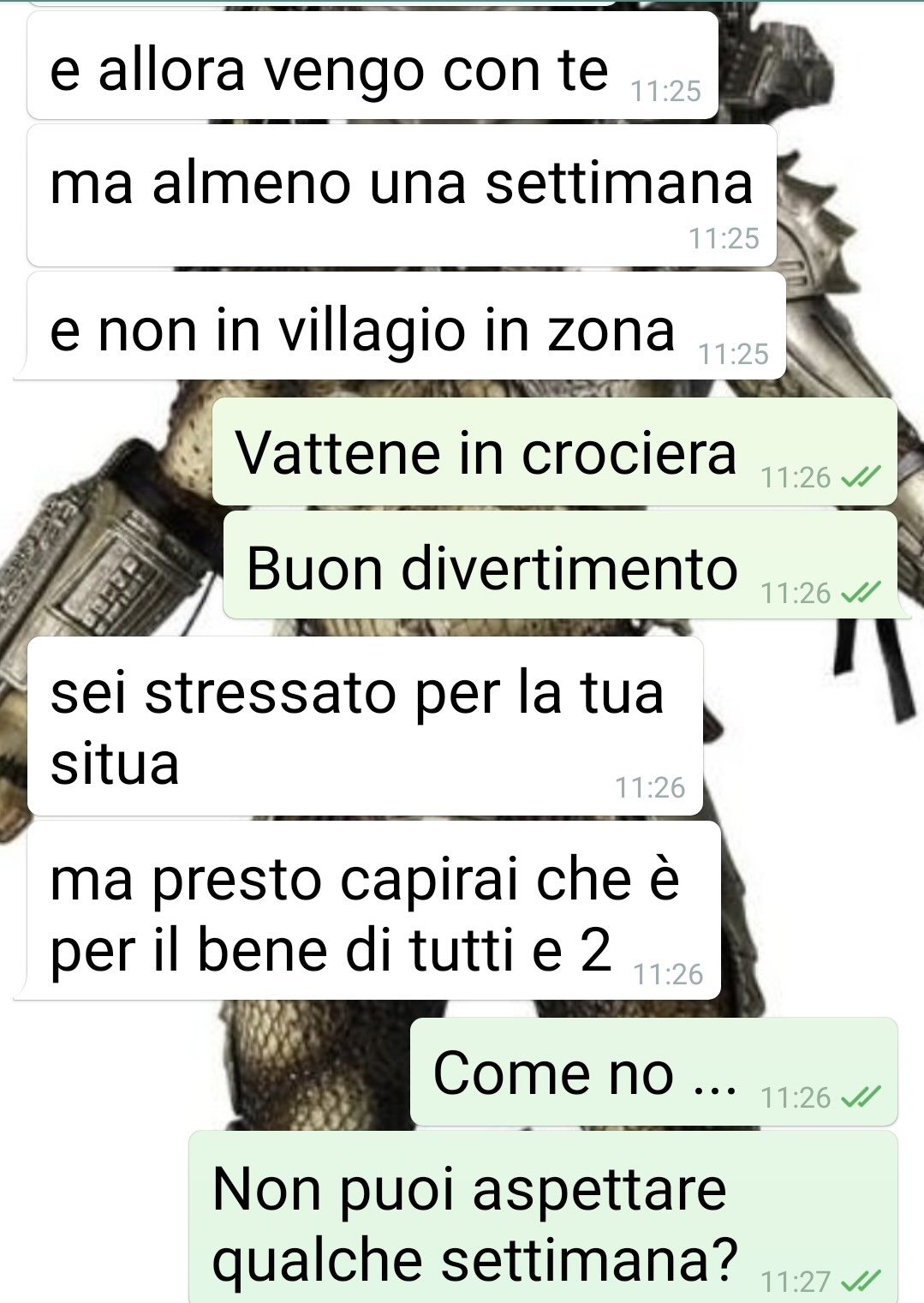 Il nostro amico utilizza un tono provocatorio riferendosi alla fidanzata e alla gestione della loro relazione, specificando di essere consapevole di come potrebbe apparire nel racconto, ma di voler comunque mostrare quanto accaduto. Spiega che negli ultimi due mesi ha attraversato una serie di disgrazie personali, senza entrare nel dettaglio, ma accennando al fatto che la situazione ha reso impossibile sostenere le vacanze che avevano inizialmente in programma, come un viaggio in Messico o a Bali.