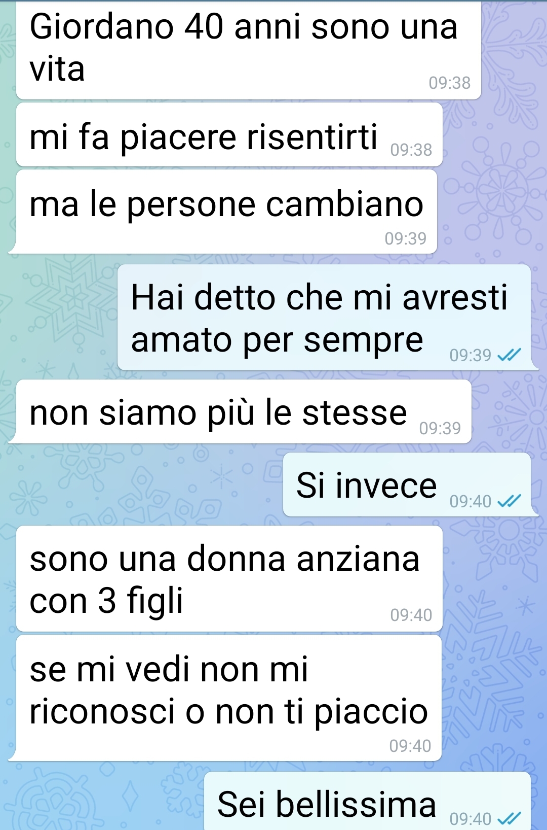 Secondo quanto riferisce il nostro amico, tutto ha origine molti anni fa, quando suo zio e Ada si erano innamorati da giovani. Si erano promessi di amarsi per sempre, convinti che il loro sentimento potesse superare qualsiasi ostacolo. Tuttavia, la vita prese una direzione diversa. Quarant’anni fa, racconta il nostro fan, era più frequente che le famiglie influenzassero pesantemente le scelte sentimentali. Ada, per volontà dei suoi cari, dovette sposare un professore più grande.