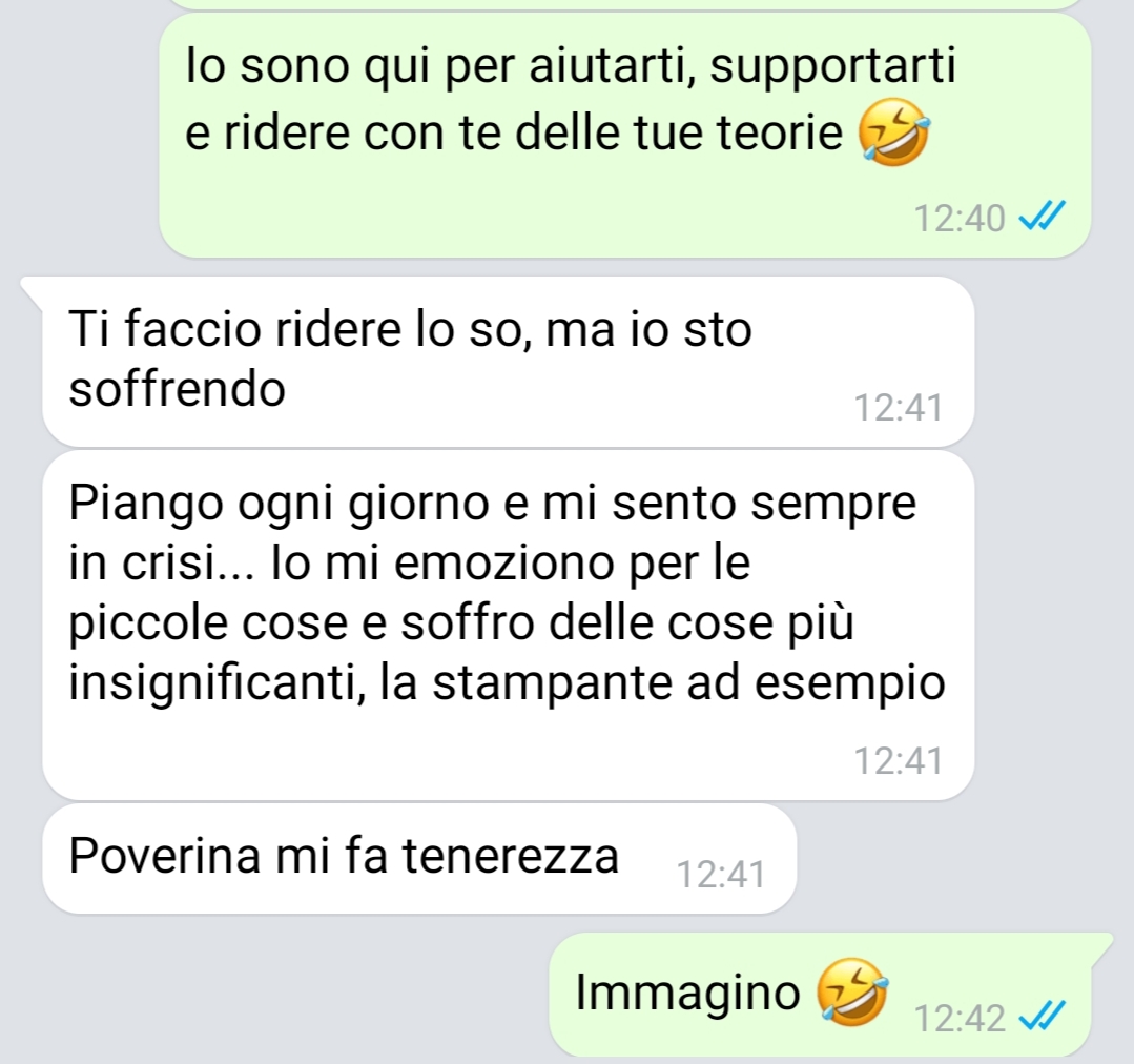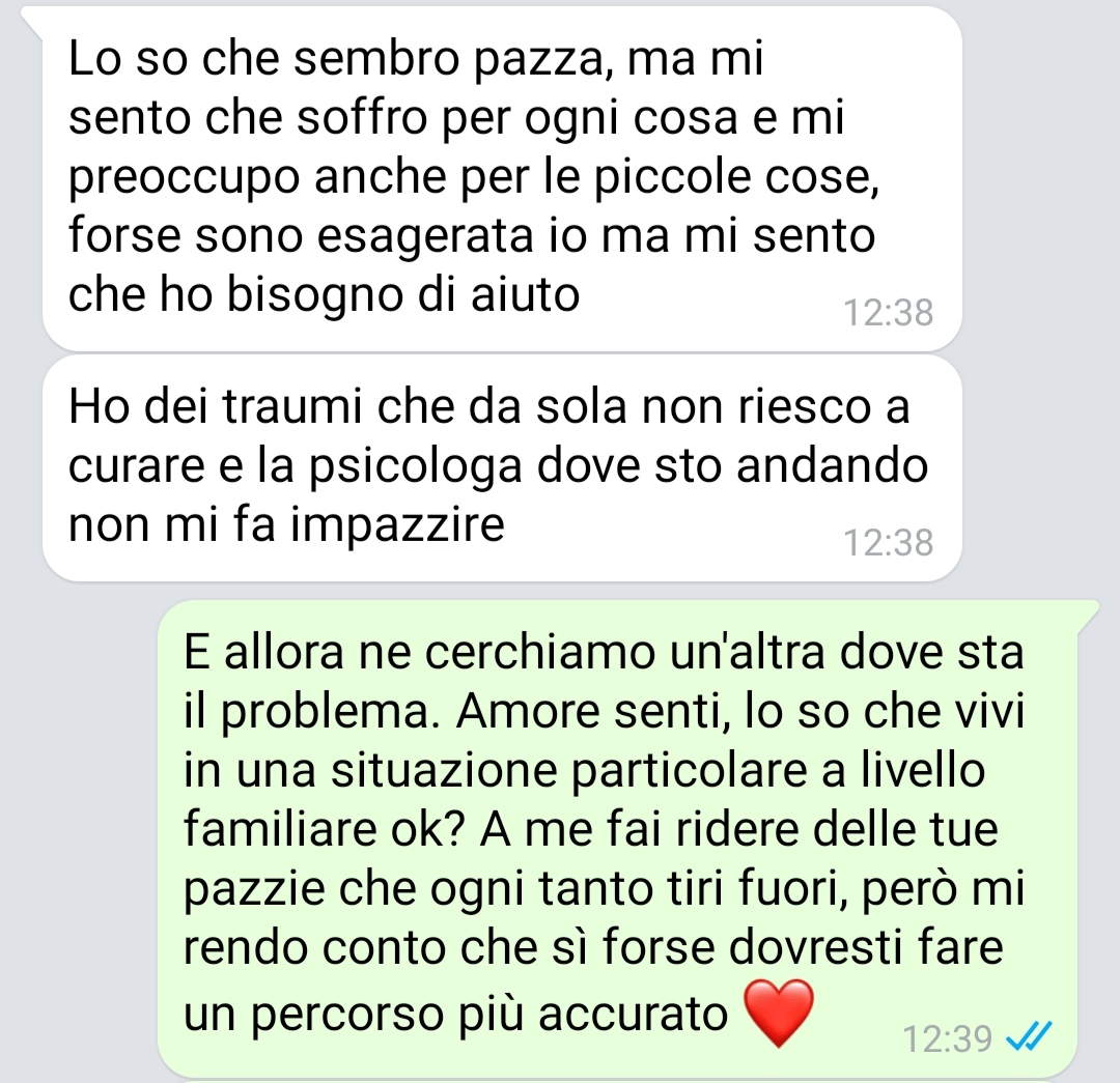 Mariano racconta che spesso prende in giro la sua ragazza in modo affettuoso e giocoso, senza mai oltrepassare il limite. È consapevole che dietro a quelle reazioni, talvolta esagerate agli occhi degli altri, si nascondono vissuti personali, fragilità, esperienze di sofferenza.