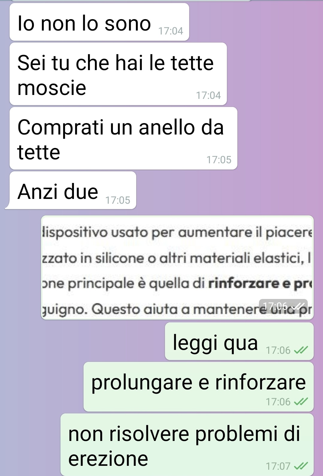 La nostra fan spiega di aver acquistato un anello pensato per la sfera più intima del suo fidanzato, immaginando che potesse essere un gioco divertente da condividere in coppia. Tuttavia, al momento del regalo, lui non ha reagito come sperava: invece di apprezzare il gesto e l’intenzione, l’ha interpretato come un’offesa personale. Da lì è nata una lite che la fan definisce come “la sagra dell’offesa gratuita e dell’infantilismo più infantile”.
