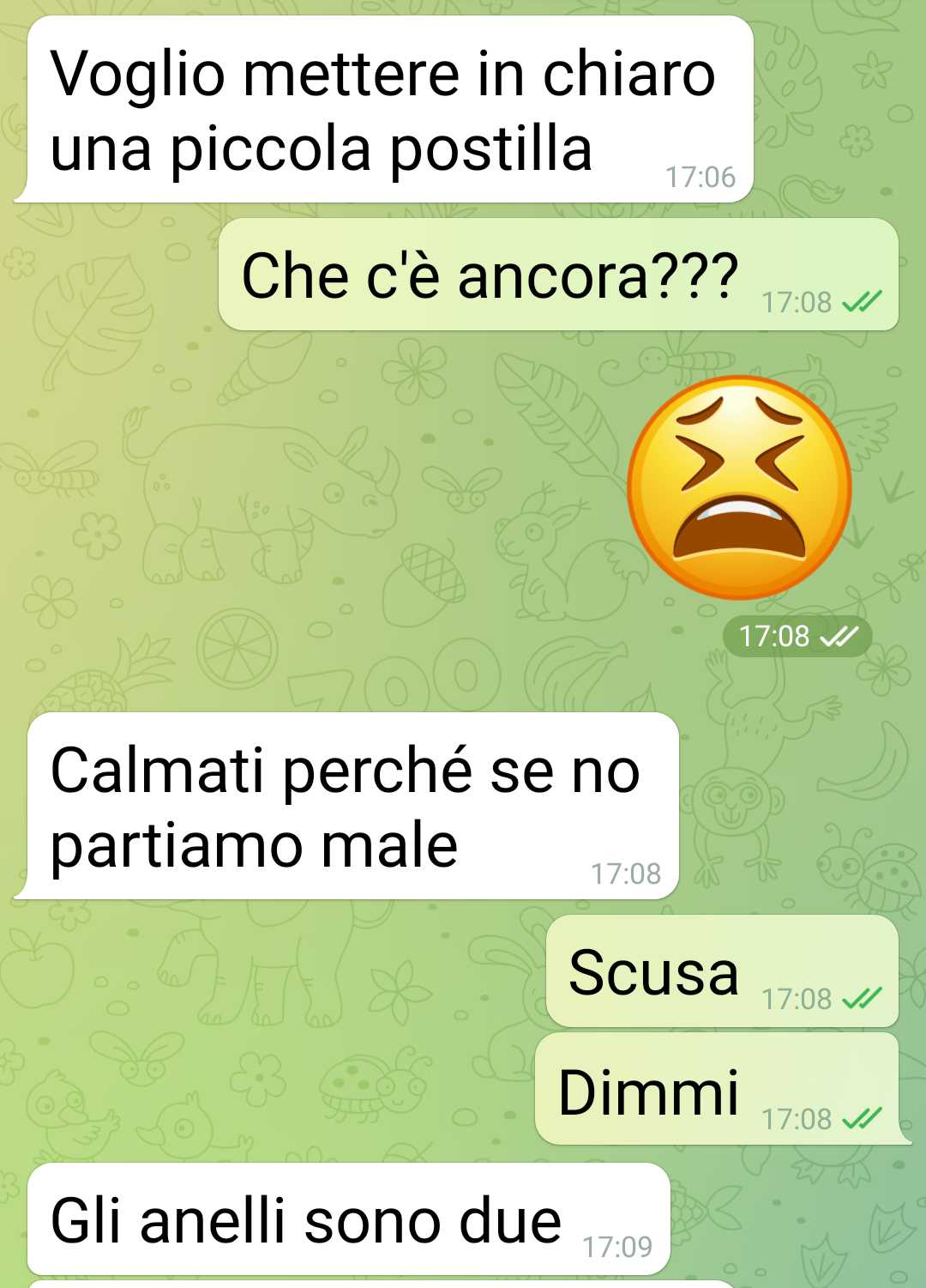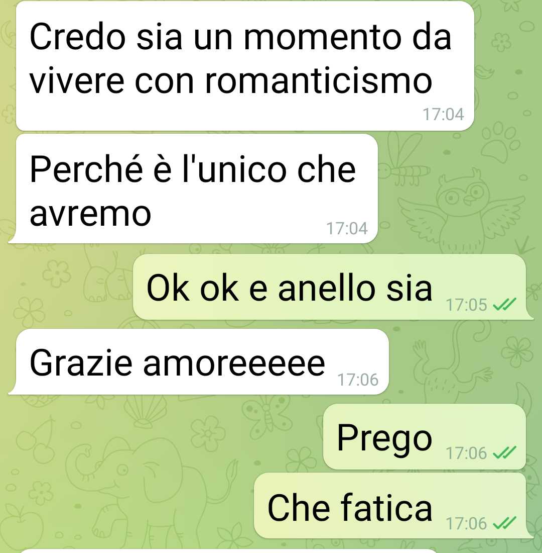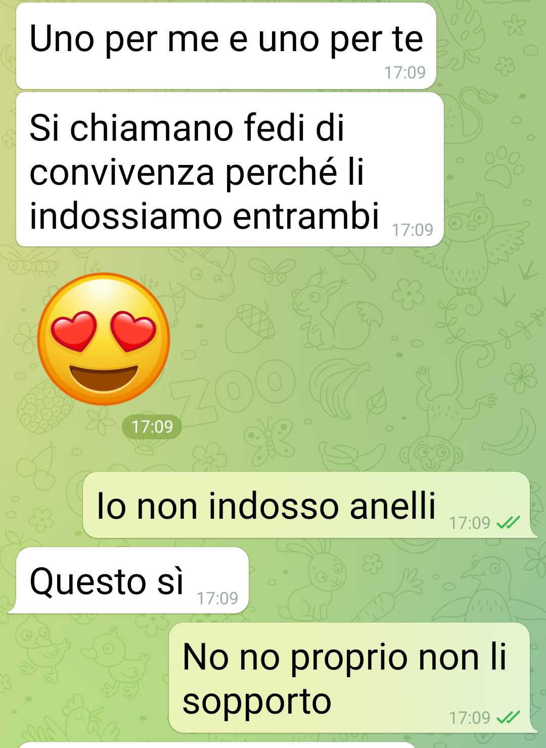 Secondo il racconto del nostro amico, alla proposta di convivere lei ha risposto chiedendo un “anello di convivenza”. Lui afferma di non aver mai sentito parlare di questa usanza e di essere rimasto sorpreso dalla richiesta. La nostra fan racconta che l’anello sarebbe un simbolo da regalare al momento di iniziare a vivere insieme, e che la fidanzata lo desiderava per una ragione specifica.