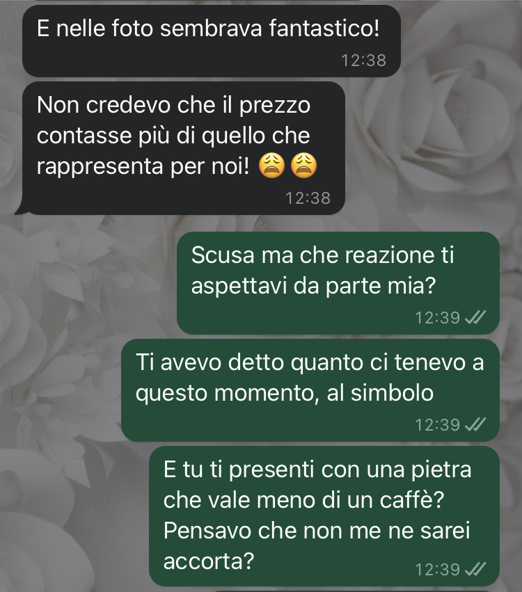 Dopo l’iniziale euforia e la sensazione di essere su una nuvoletta, la follower ha iniziato a notare alcuni dettagli che la insospettivano riguardo all’anello di fidanzamento. Nonostante non volesse apparire eccessivamente pignola o fissata sui particolari, non riusciva a liberarsi di una strana sensazione che qualcosa non quadrasse. Questo pensiero persistente l’ha spinta a iniziare un’indagine discreta, cercando di non destare troppi sospetti nel compagno.