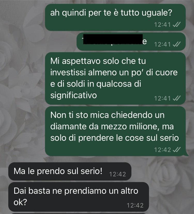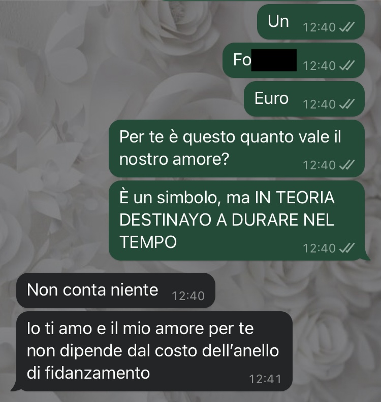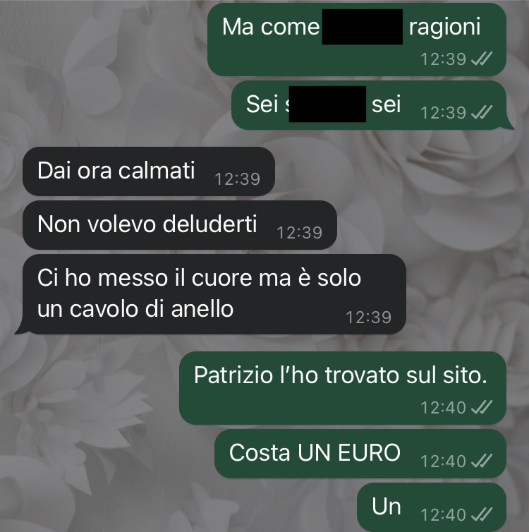 Con grande cautela, la nostra fan ha iniziato a porre delle domande apparentemente casuali al fidanzato, cercando informazioni sulla provenienza dell’anello e su dove l’avesse acquistato. Le risposte ricevute dall’uomo, però, l’hanno lasciata sempre più perplessa e dubbiosa. La situazione si è trascinata per alcuni giorni, con l’amica che continuava a insistere gentilmente per ottenere chiarimenti, fino a quando il fidanzato non ha deciso di rivelare finalmente tutta la verità.