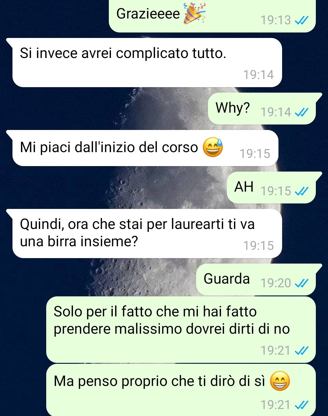Martina racconta infatti che proprio grazie a questa bizzarra sequenza di eventi ha conosciuto quello che oggi è il suo attuale fidanzato. Una storia che parte da un messaggio inaspettato e si trasforma in un legame autentico, nato nei giorni più tesi della sua carriera universitaria.