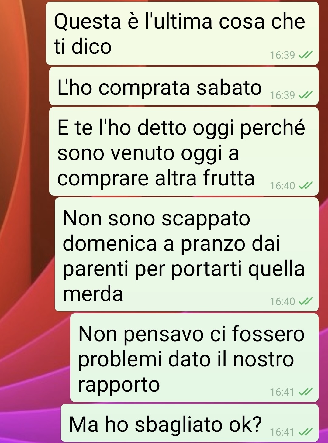 L’amico racconta di essere rimasto senza parole, non tanto per la questione dell’anguria — che considera un dettaglio — quanto per la mancanza di rispetto e di professionalità da parte di chi, in oltre dieci anni, non aveva mai dato motivo di dubitare.