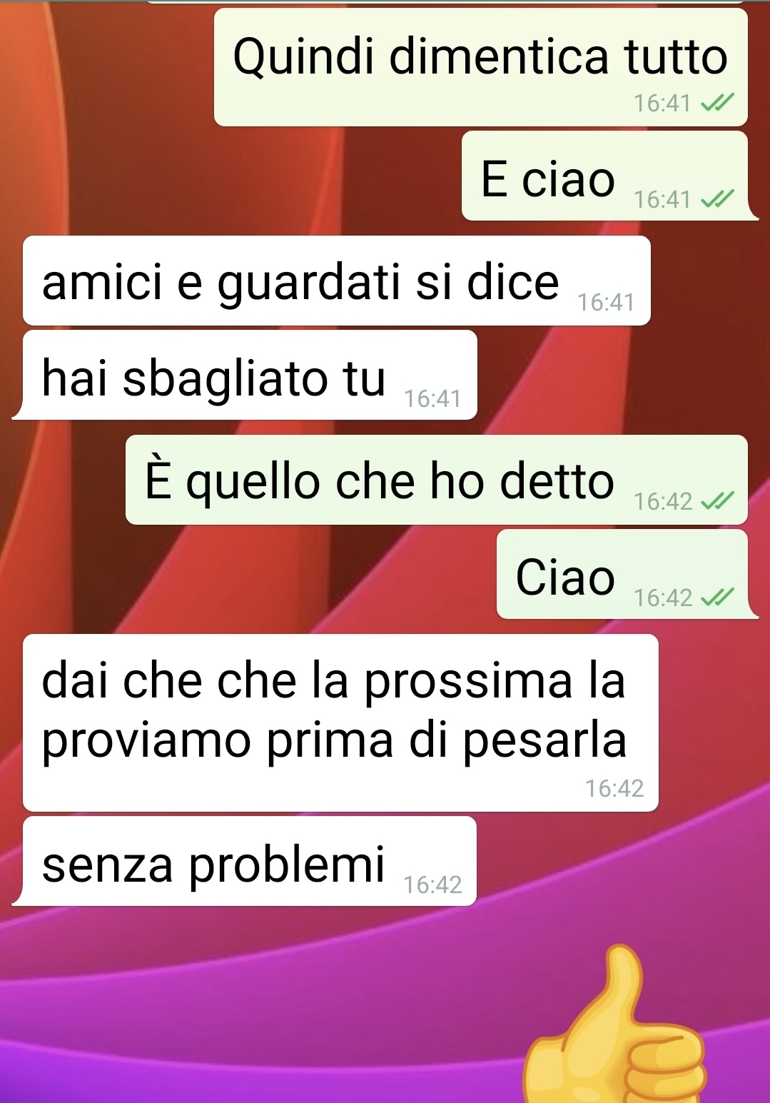 Conclude il suo racconto con amarezza, dicendo che non si sarebbe mai aspettato di chiudere così un rapporto tanto duraturo e che, da quel giorno, ha deciso di non mettere più piede in quel negozio. “Ci vediamo, Teo”, scrive, con ironia amara, ricordando come una semplice chiacchierata su WhatsApp sia bastata a distruggere in pochi minuti una fiducia costruita in anni.