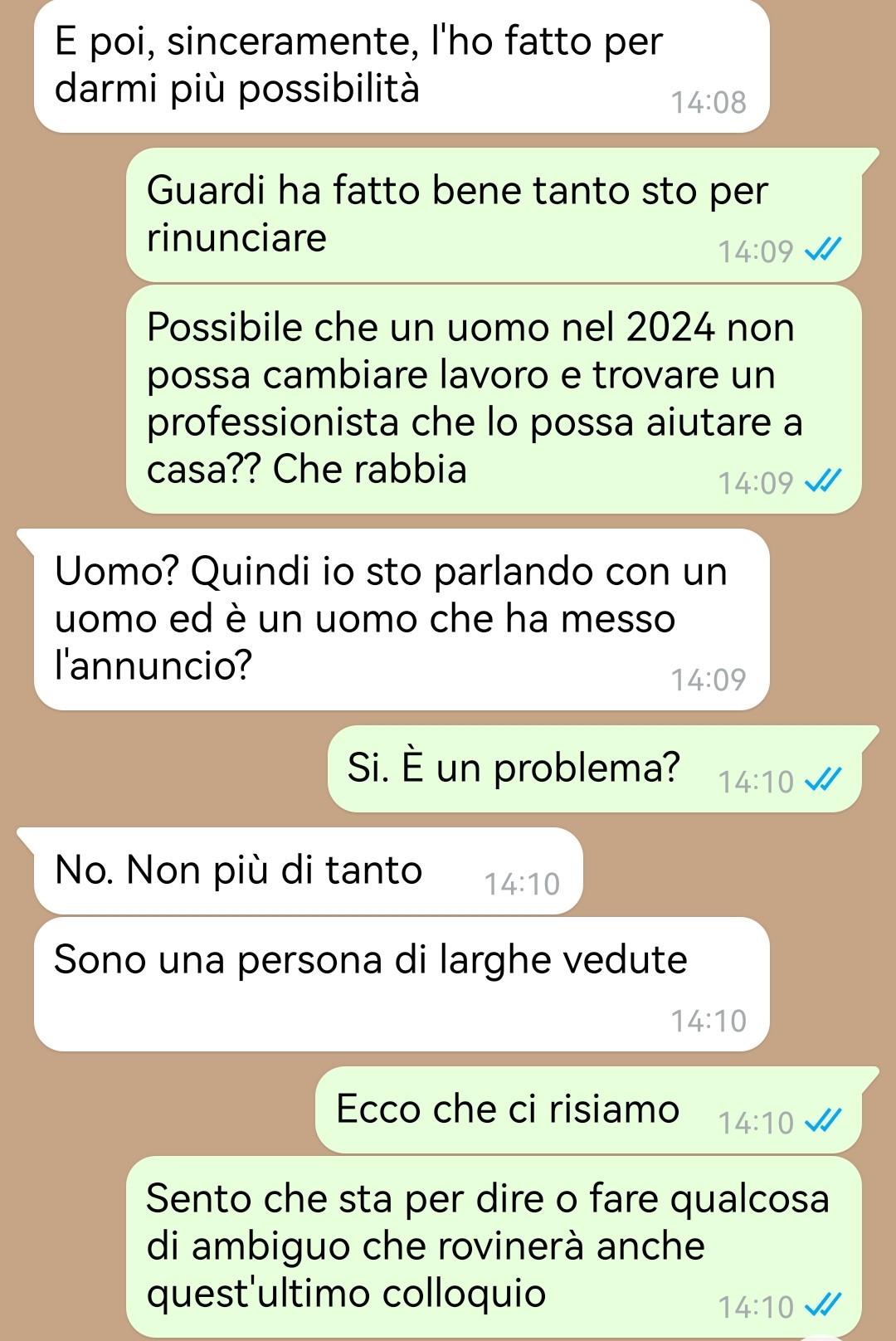 Per dare un contesto, Giorgio spiega che l’annuncio è stato il frutto di un importante cambiamento nella sua vita. Dopo anni di lavoro mal retribuito e con orari difficili, finalmente gli si è presentata l’opportunità di passare a una nuova mansione, più soddisfacente sia dal punto di vista personale che economico. Un passaggio meritato, frutto di impegno e sacrifici, ma che ha comportato anche una modifica sostanziale nella sua routine quotidiana.