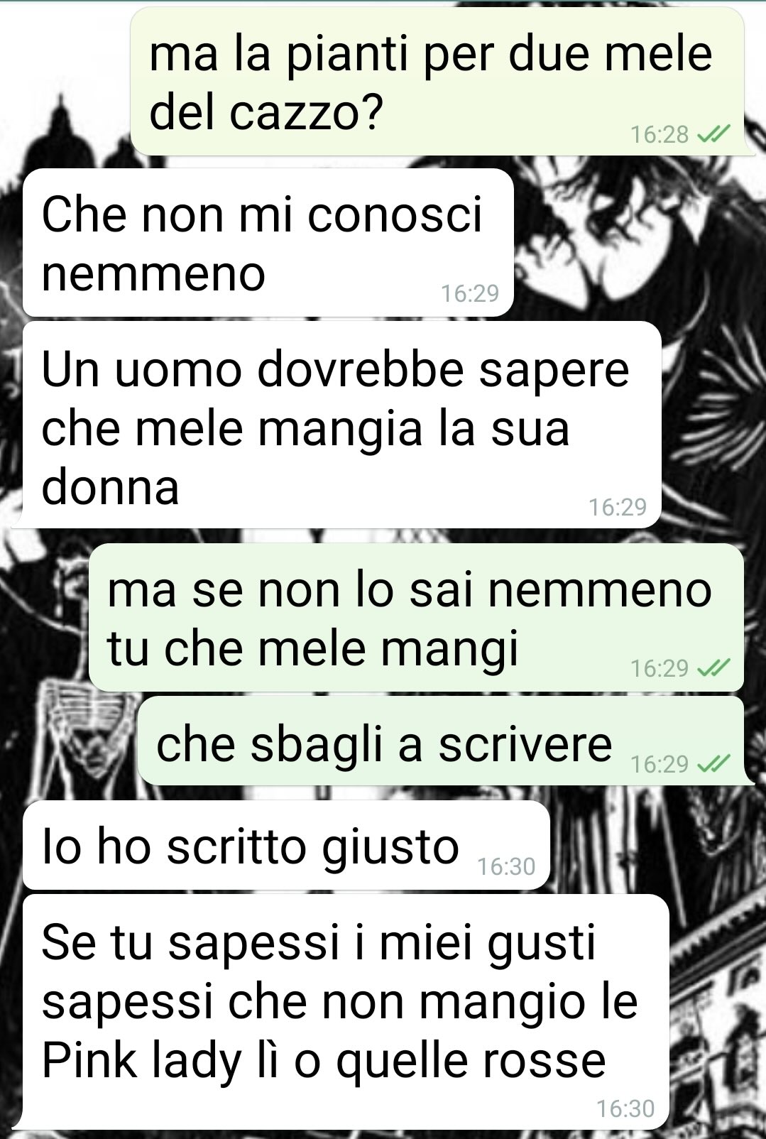Secondo il suo racconto, leggendo la chat emerge chiaramente che l’errore nella faccenda sarebbe tutto della sua compagna. Nonostante ciò, lei avrebbe continuato ad attaccarlo senza tregua, accusandolo e scaricando su di lui ogni colpa. Anche quando il nostro fan sottolinea di aver chiesto il parere a ben due addetti del reparto frutta per avere conferma sulla scelta, la risposta sarebbe stata comunque un attacco a testa bassa.
