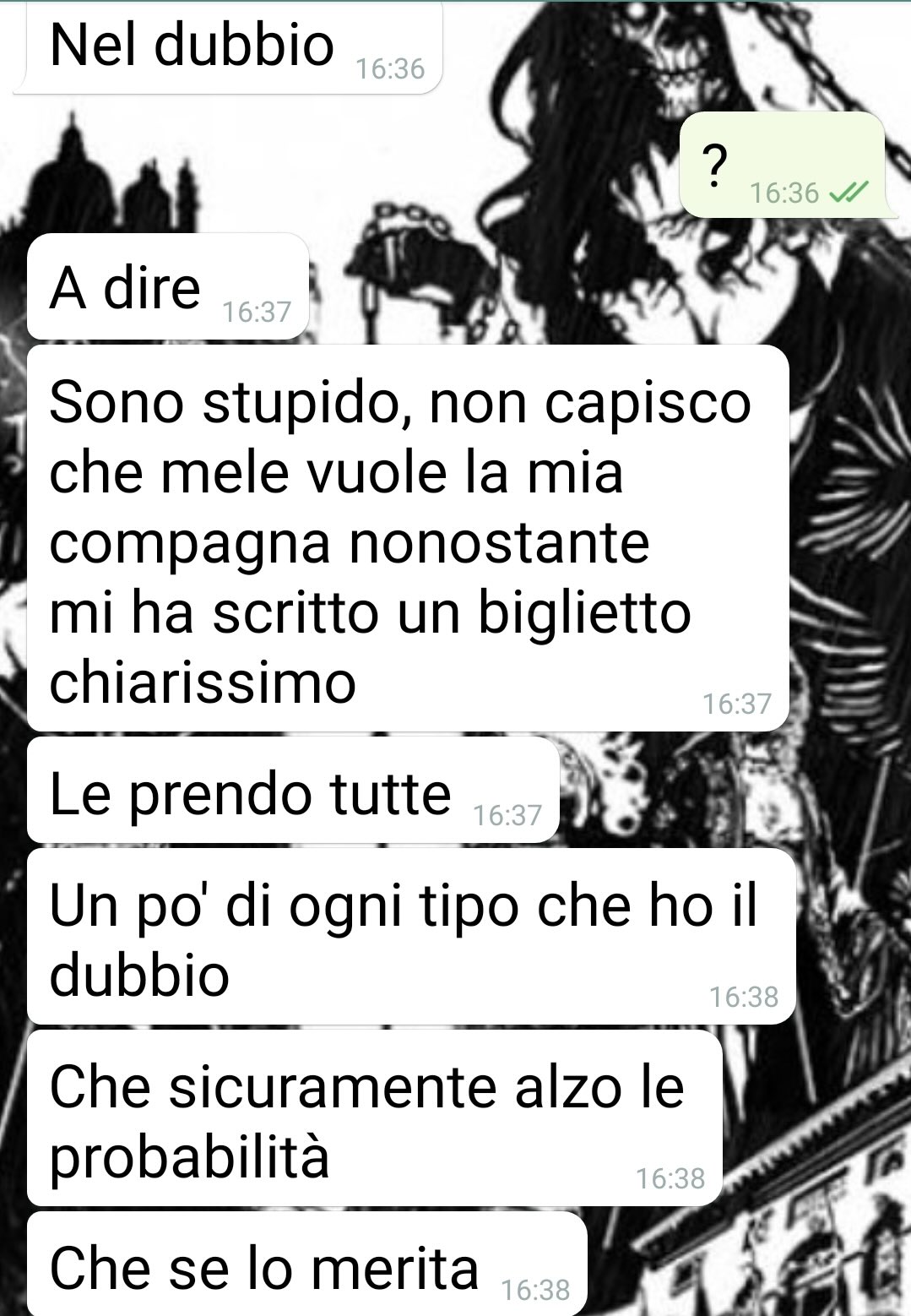 Conclude il suo sfogo lasciando a chi legge la libertà di giudicare l’intera conversazione, augurando buona lettura e sottolineando di avere bisogno di una dose extra di pazienza. Secondo lui, se c’è qualcuno che dovrebbe sentirsi esausto ed esasperato, quello è proprio lui… e non certo la sua compagna.