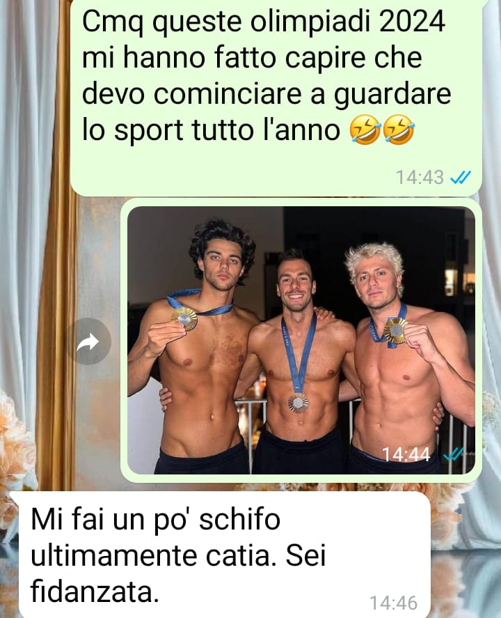 Mi chiamo Catia e sono stata colpita alle spalle da quella che consideravo una mia amica. Non posso ancora credere alle cose che mi ha detto quando le ho inviato una foto e un messaggio innocente di apprezzamento ai nostri nuotatori. Tutti ormai sappiamo quanto sono diventati famosi dopo queste olimpiadi appena passate! Con altre amiche ci stavamo scambiando qualche foto e ho deciso di mandarne una anche a Rossella, con un messaggio innocente. È una cosa che facciamo tutte praticamente e chi lo nega, beh, non è una persona onesta! Volevo solo farmi una risata con un’amica, ma lei si è seccata tantissimo e ha deciso di vomitarmi addosso tutto quello che pensava di me nell’ultimo periodo e di cui OVVIAMENTE io non sapevo nulla. Mi domando: come si fa a ragionare così? Non so se sono più indignata per le motivazioni che ha avanzato alla mia richiesta di spiegazioni, o l’aver scoperto cosa covava davvero nei miei confronti e cosa è intenzionata a fare. È proprio vero, a volte le amiche sono le peggiori nemiche che ci ritroviamo intorno!