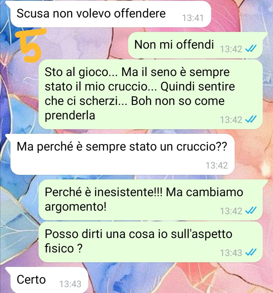 Scrive che l’ha fatto più per curiosità che per altro, senza grandi aspettative, ma dopo poco ha iniziato a parlare con un ragazzo che le è sembrato subito gentile e con buone maniere. Le conversazioni, racconta, erano leggere, spontanee e piacevoli, e tra loro si era creata una certa complicità. Nessuno dei due aveva voluto rivelare la propria identità, nemmeno i veri nomi: continuavano a chiamarsi con i nickname scelti nella chat.