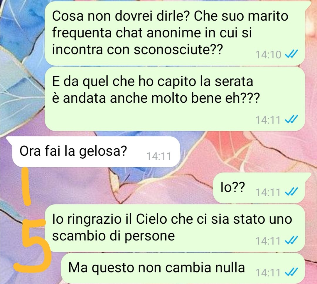 Per organizzare l’incontro hanno deciso di non mandarsi foto nemmeno all’ultimo momento, per non rovinare la “magia dell’anonimato”, come la chiama lei. Si sono dati solo due riferimenti per riconoscersi: il luogo preciso e il colore dei vestiti. Lei avrebbe indossato un vestito rosso, lui una camicia azzurra.