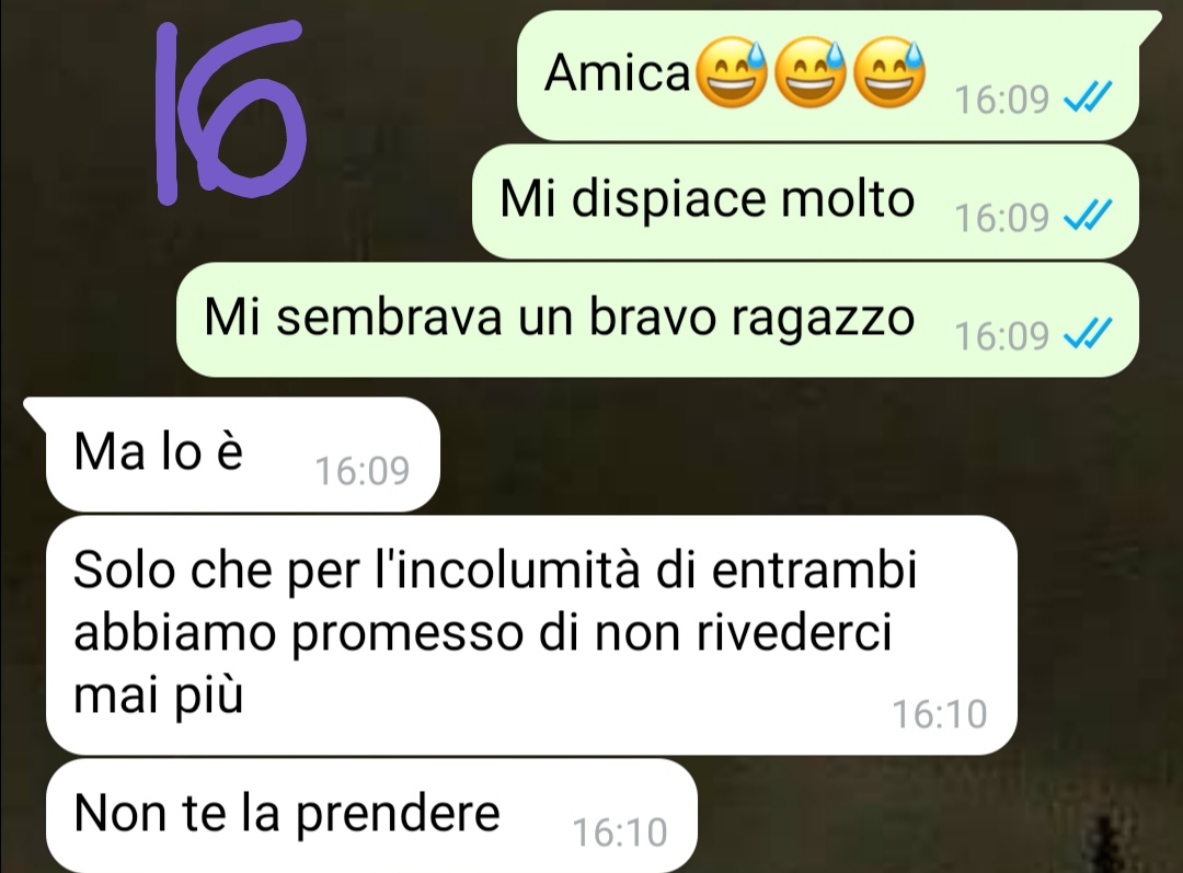 L’amica aveva avvisato la nostra fan di questo primo appuntamento praticamente al buio, e lei si era ritrovata quasi più in ansia della diretta interessata, sentendosi un po’ responsabile della situazione. L’ansia era aumentata quando si era resa conto di non conoscere poi così bene questo ragazzo, iniziando ad immaginare ogni tipo di scenario disastroso. Aveva aspettato tutta la sera sperando che l’amica le desse notizie dell’appuntamento, ma queste notizie non erano arrivate.