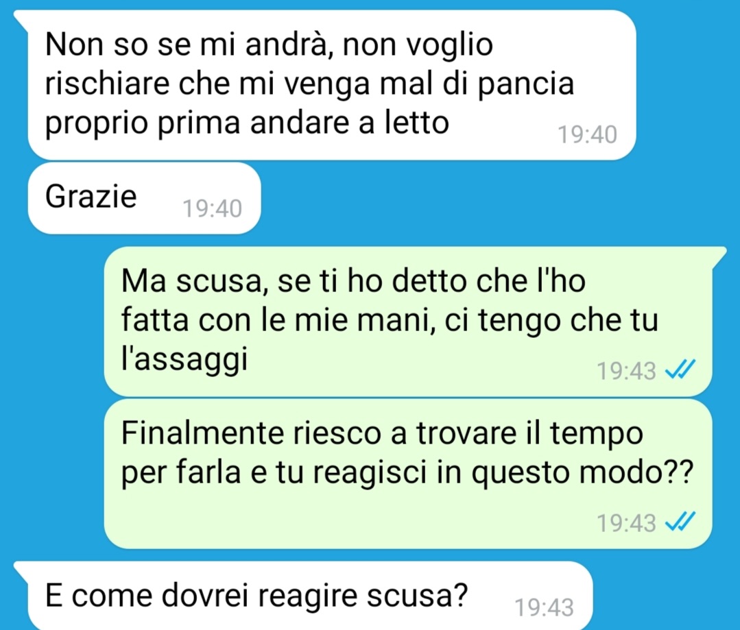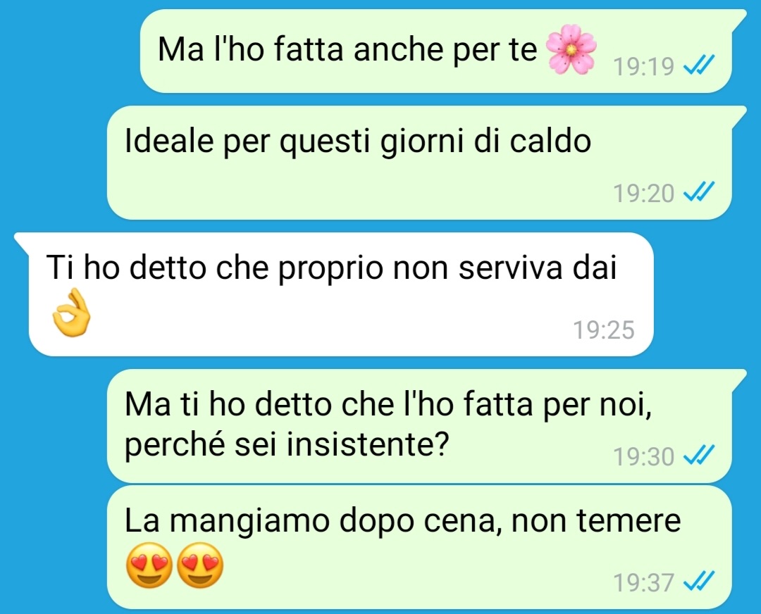Mi chiamo Michela e il mio ragazzo ha deciso di farmi innervosire. Stiamo insieme da pochi mesi e ancora dobbiamo capire come andare d’accordo e riuscire a trovare un punto comune. Ammetto che litighiamo spesso e che forse abbiamo due caratteri opposti ma stavolta l’ha combinata davvero grossa. Ha deciso di mancarmi di rispetto e superare ogni mia aspettativa. Qualche giorno fa gli ho preparato una gustosissima macedonia, perfetta per questi giorni di calore. Nonostante questo lui non ha voluto minimamente assaggiarla, anzi, ha tirato fuori una scusa che mi ha lasciata senza parole. Volete sapere quel è? Beh a voi la fantasia…